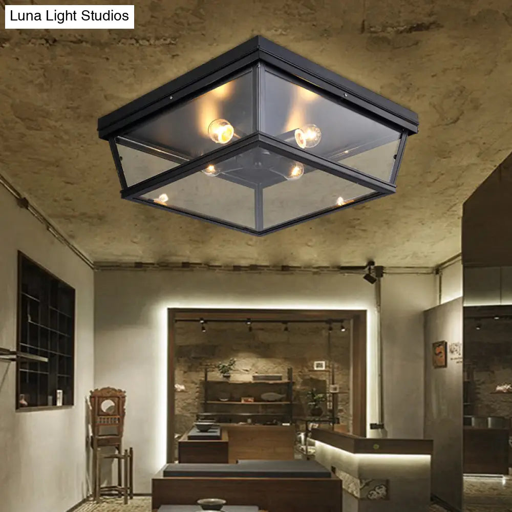 DecorBites™ DecorBites™ Industrial Square/Hexagon Cage Glass Ceiling Light with 2/4 Bulbs, Clear/Black Flush Mount Lighting