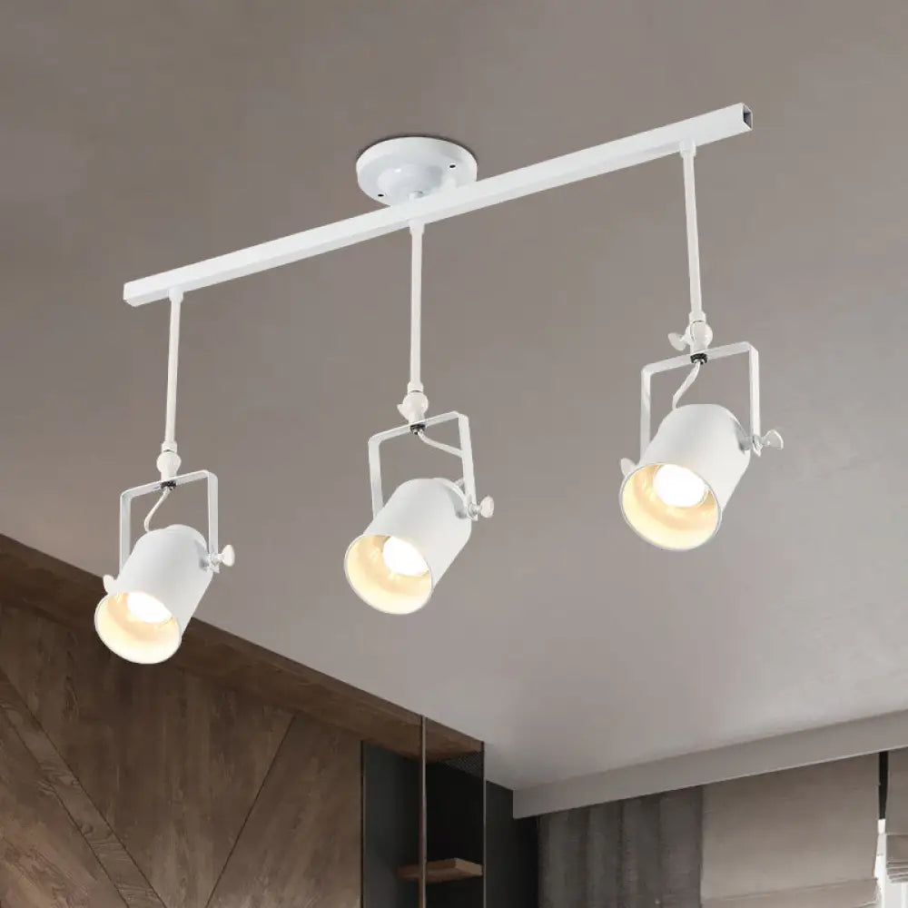DecorBites™ DecorBites™ Industrial Style Metallic Cylinder Dining Room Semi-Flush Light Track Fixture - Rotatable, Black/White, 1/2/3 Heads
