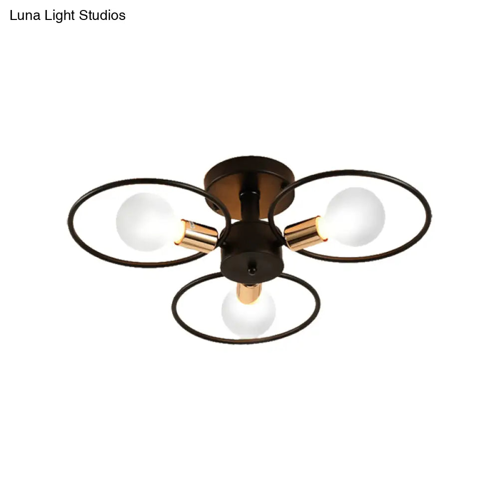 DecorBites™ DecorBites™ Industrial Triple Rings Semi Mount Ceiling Light Fixture – 3/6 Metal Lights in Black for Bedroom