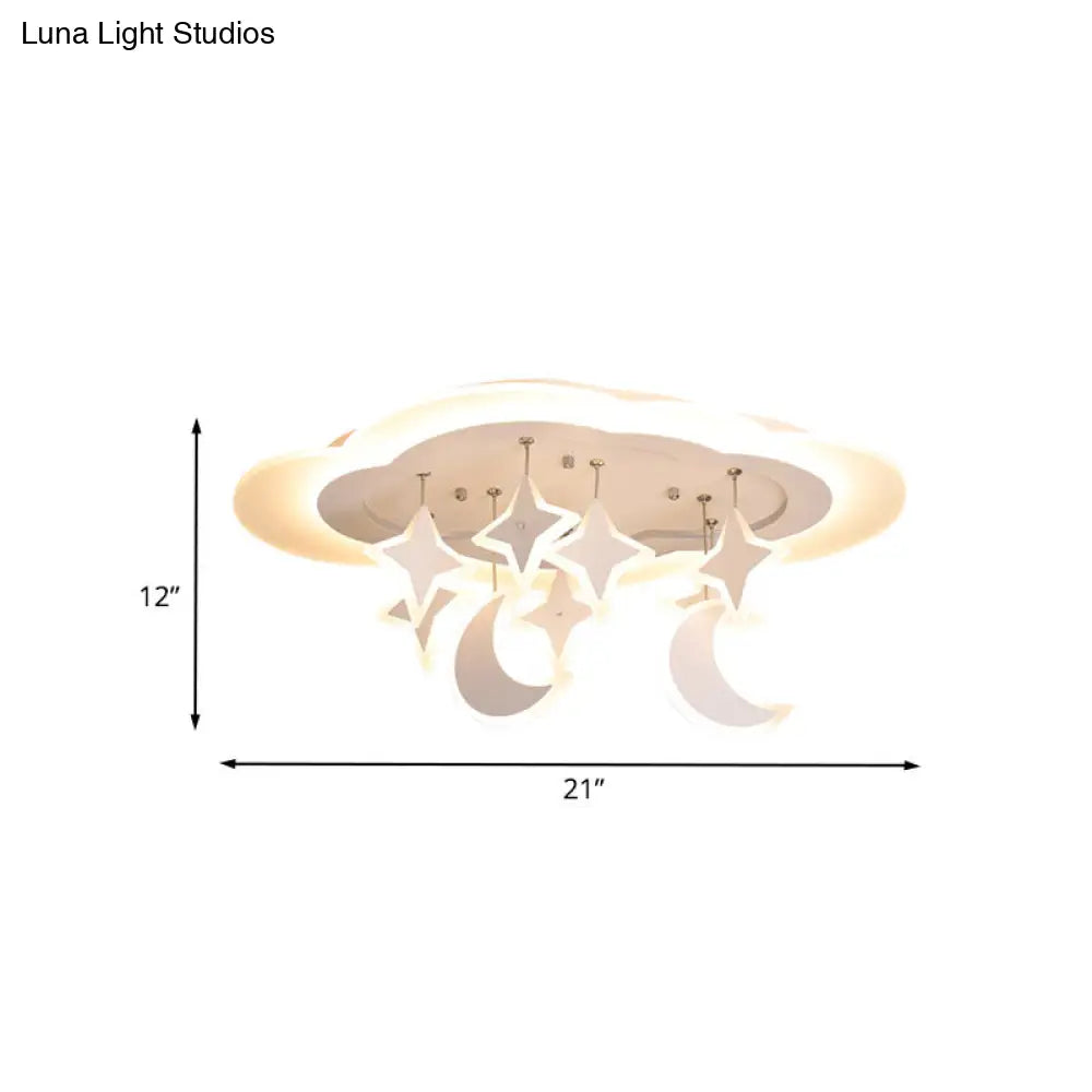 DecorBites™ DecorBites™ Kid-friendly Acrylic Cloudy LED Flush Ceiling Light with Dangling Moon and Star - Warm/White Glow