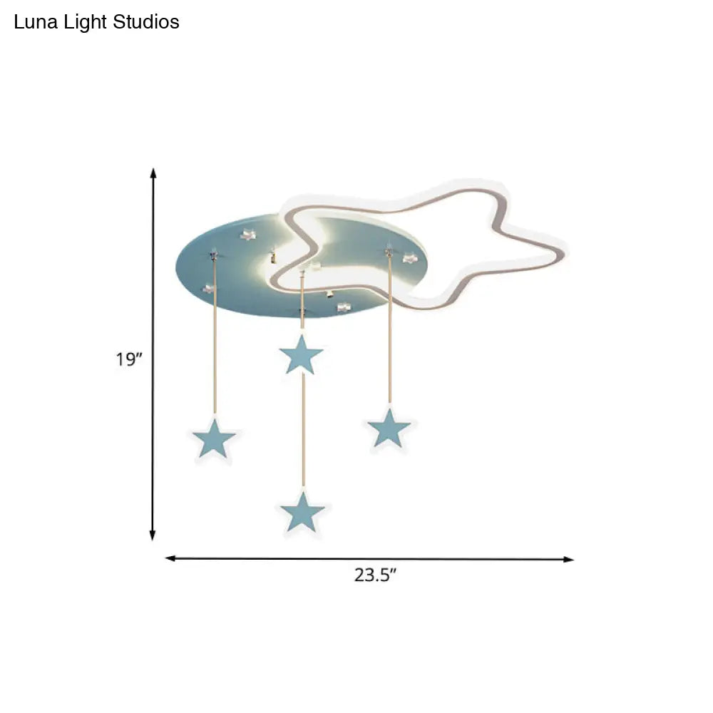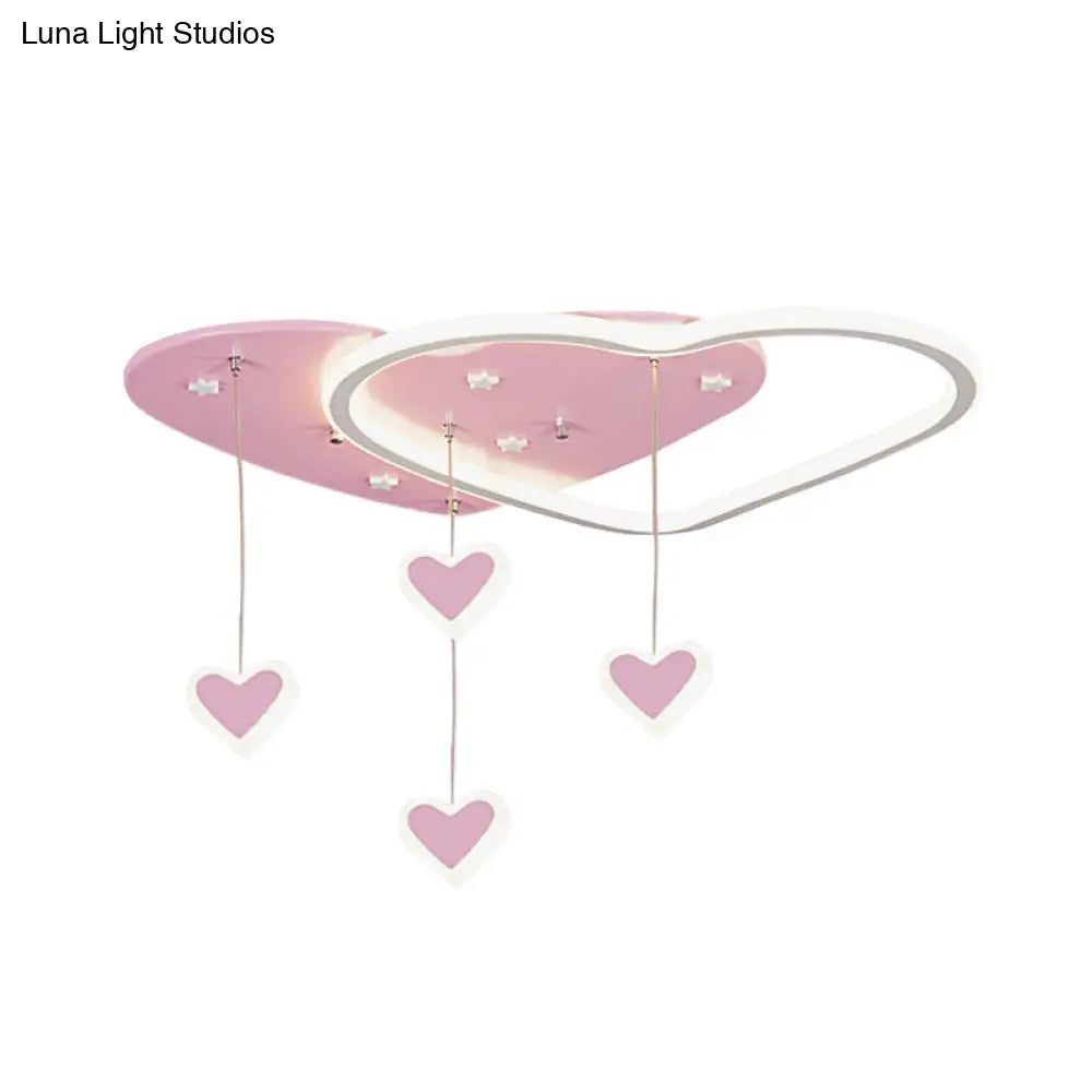 DecorBites™ DecorBites™ LED Flush Mount Kids Bedroom Ceiling Lamp with Drape in Pink/Blue – Star, Cloud, and Loving Heart Design