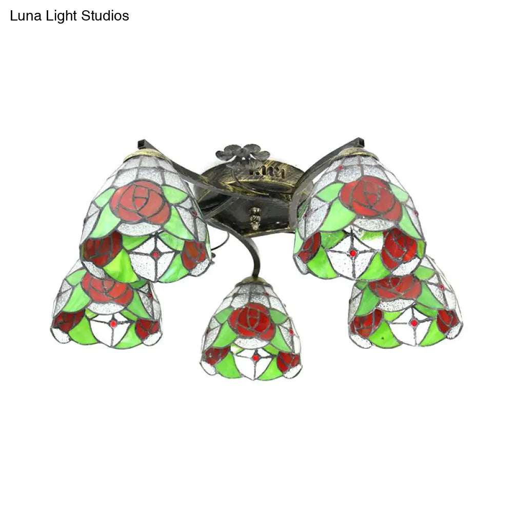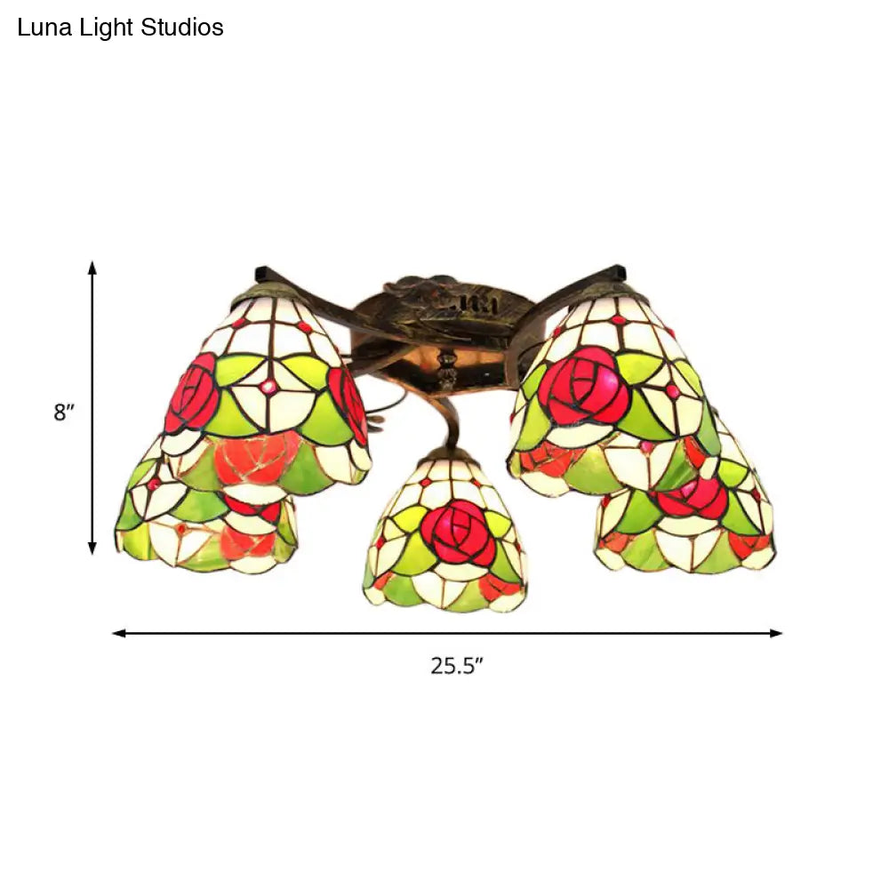 DecorBites™ DecorBites™ Lodge Style Stained Glass Rose Semi Flushmount with 5 Heads for Living Room - Clear/White Flush Lighting