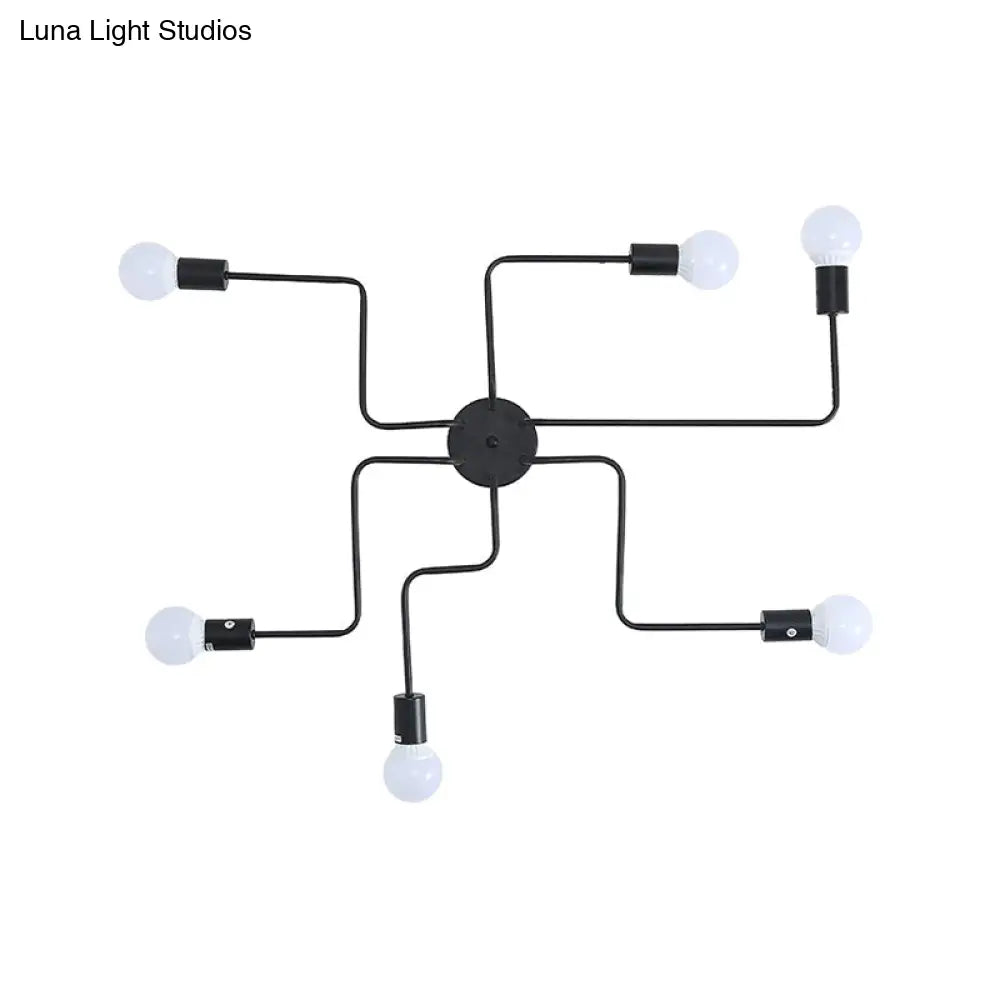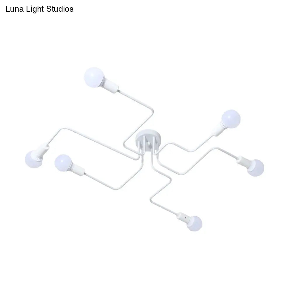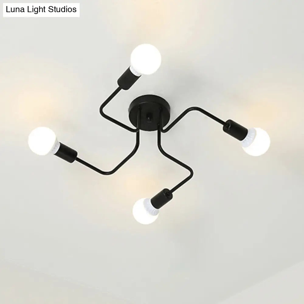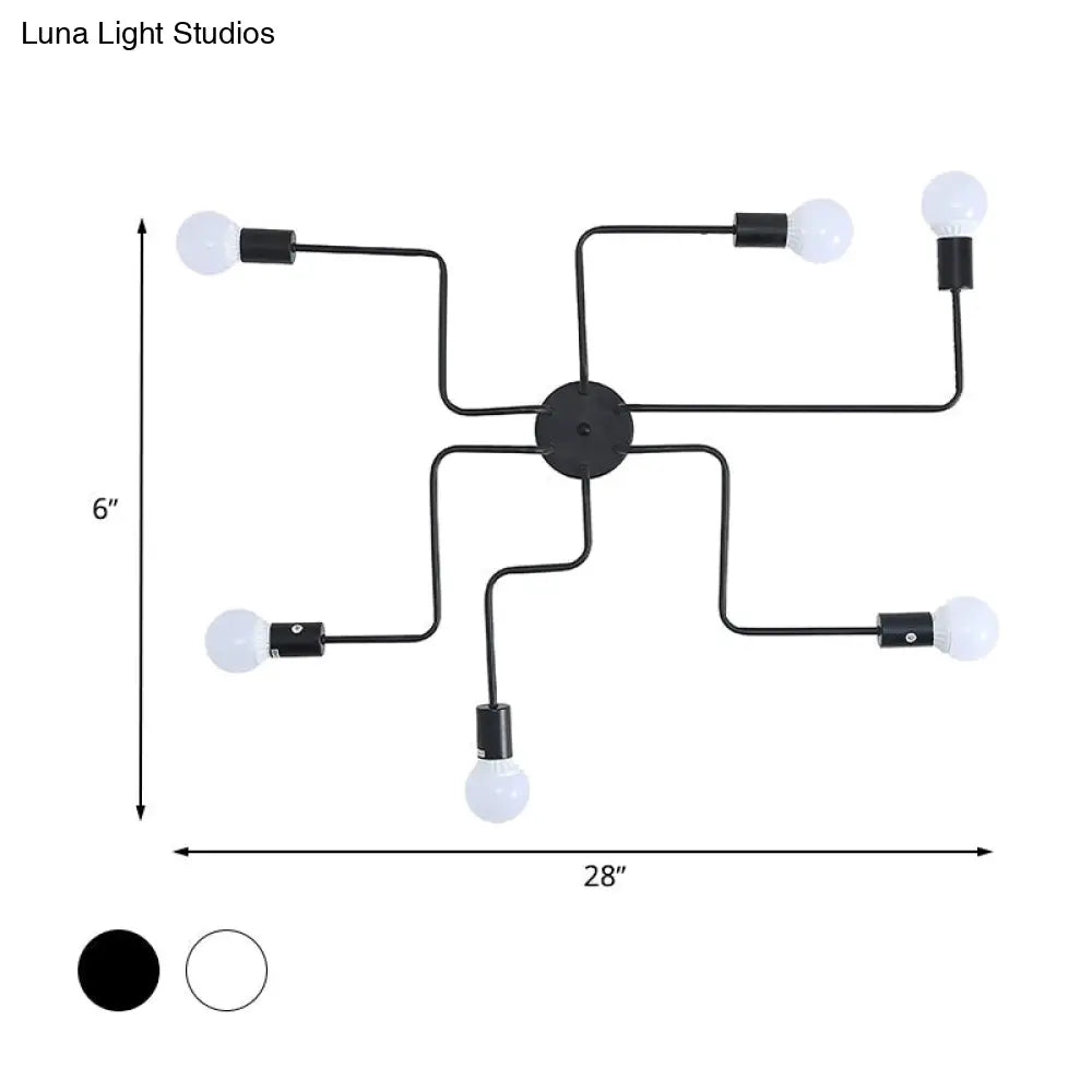 DecorBites™ DecorBites™ Loft Industrial Exposed Semi Flush Light Fixture - 4/6-Head Metallic Ceiling Light in Black/White for Living Room