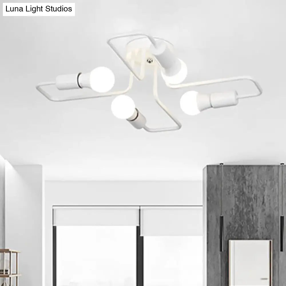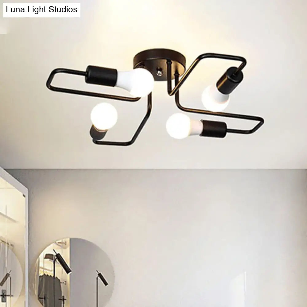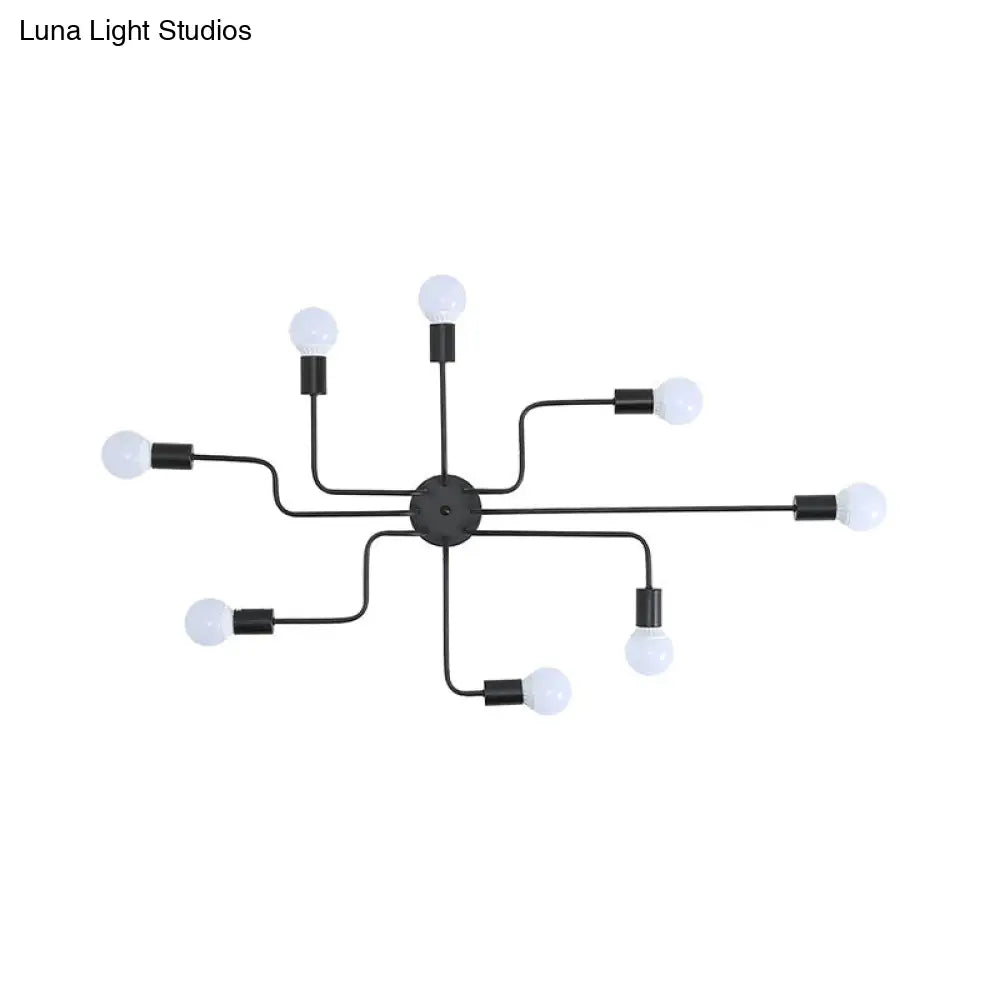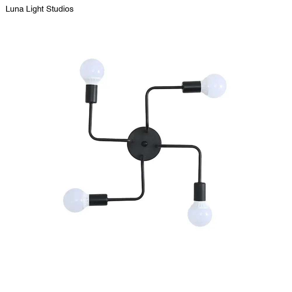DecorBites™ DecorBites™ Loft Industrial Exposed Semi Flush Light Fixture - 4/6-Head Metallic Ceiling Light in Black/White for Living Room
