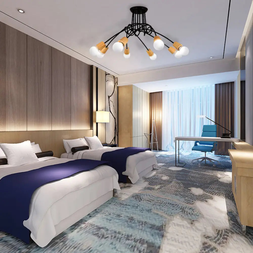 DecorBites™ DecorBites™ Loft Style Metal Ceiling Light with Open Bulb & Twisted Arm – 3/5 Lights, Wood Accent – Perfect for Kitchen & Semi Flush Pendant