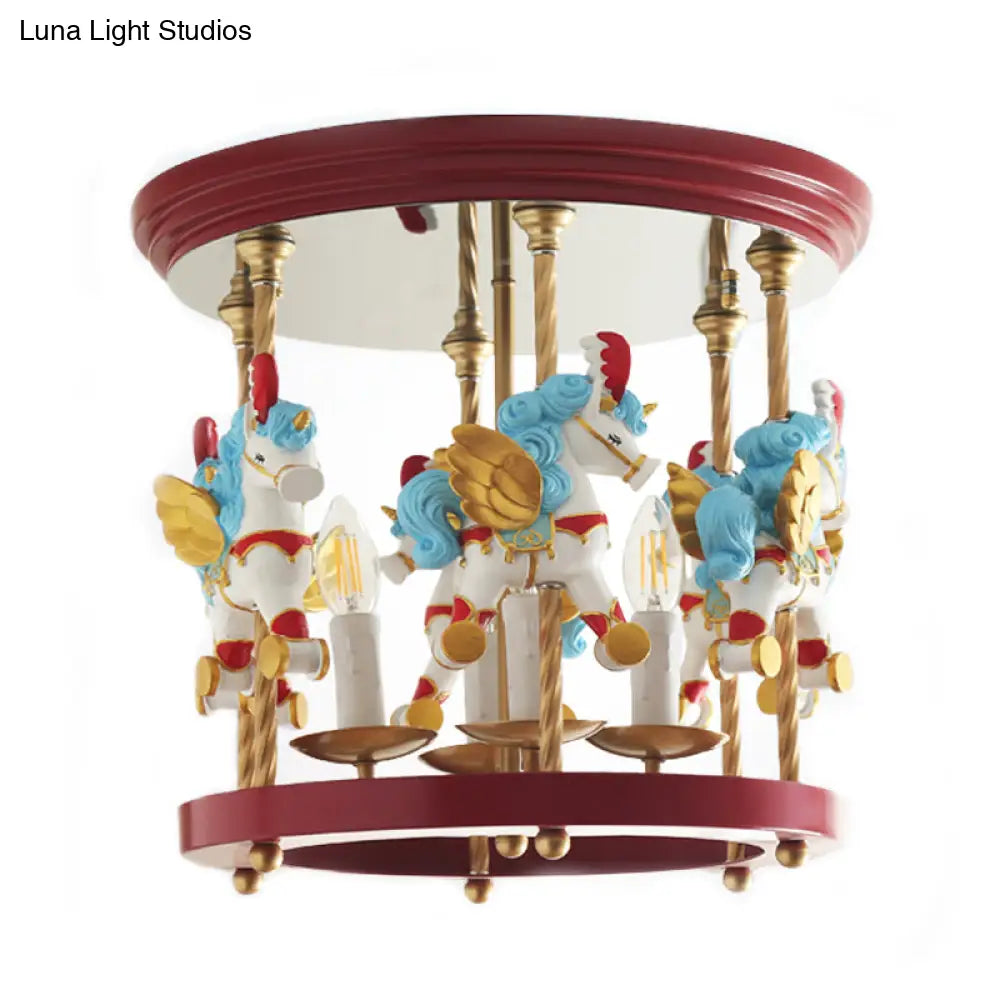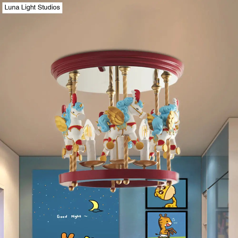 DecorBites™ DecorBites™ Metal Carousel Semi Flush Cartoon Flush Mount Lighting Fixture for Children's Room - 4-Bulb Red/Pink/Yellow