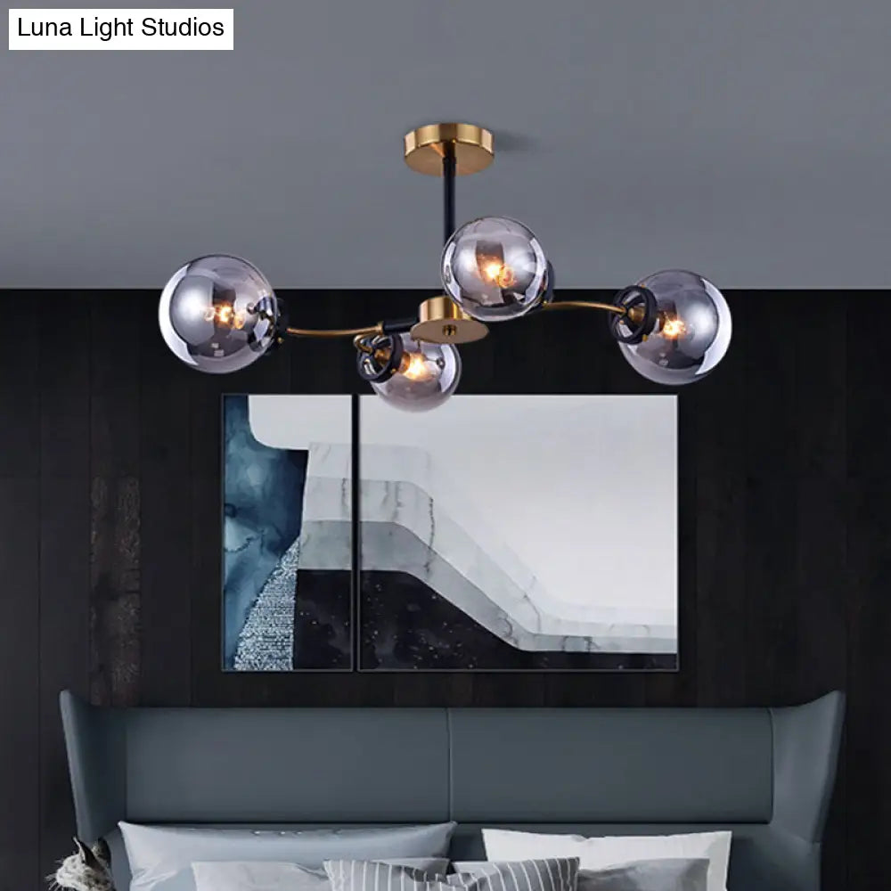 DecorBites™ DecorBites™ Mid Century Smoke Grey Glass Semi Flush Ceiling Light Fixture - 4 Bulbs for Bedroom Lighting