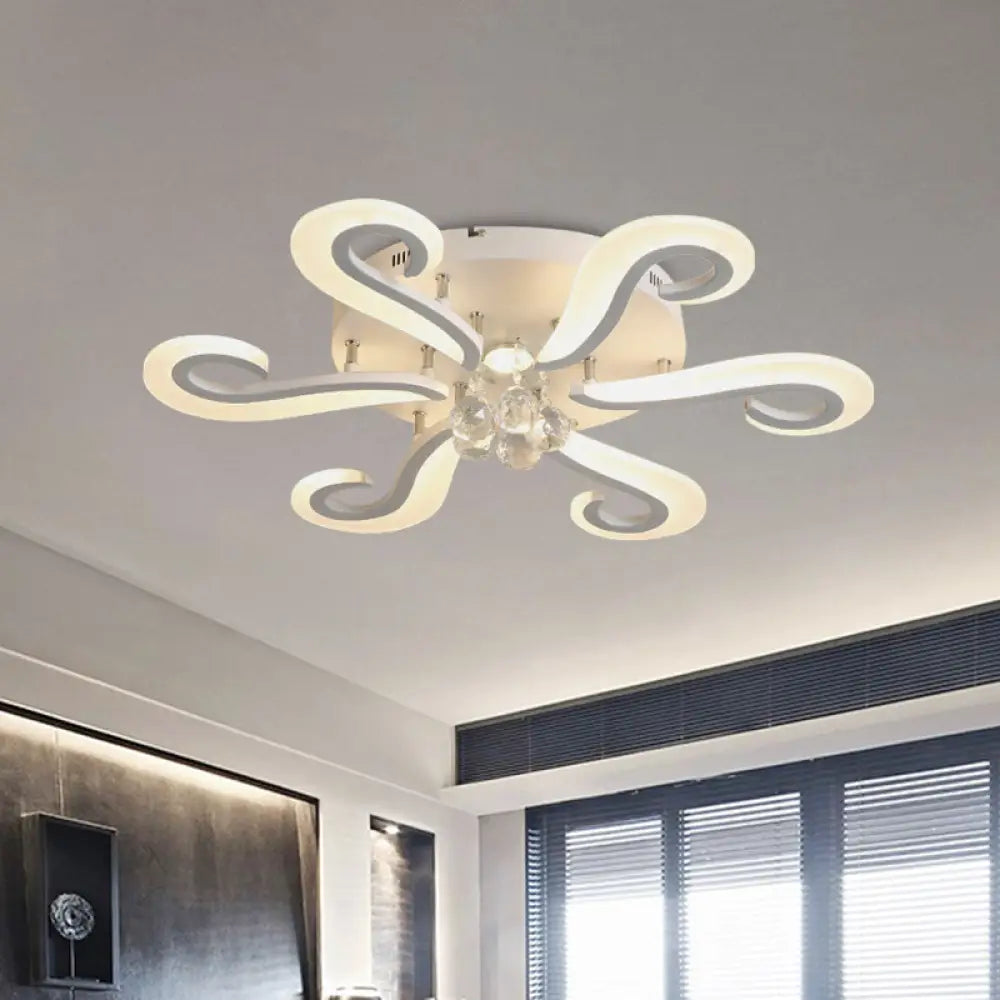 DecorBites™ DecorBites™ Minimalist 6-Head Acrylic LED Semi Flush Light with Crystal Droplet - White Finish