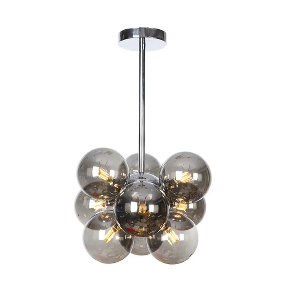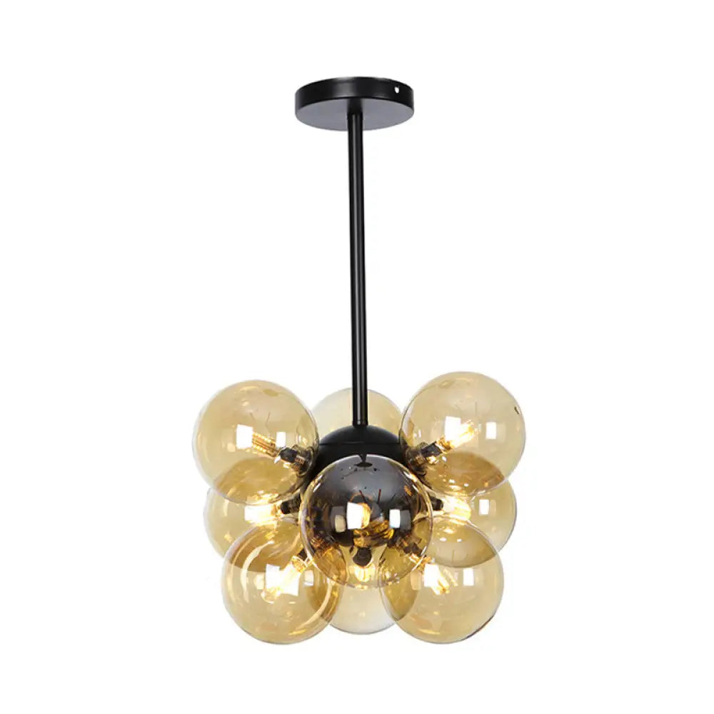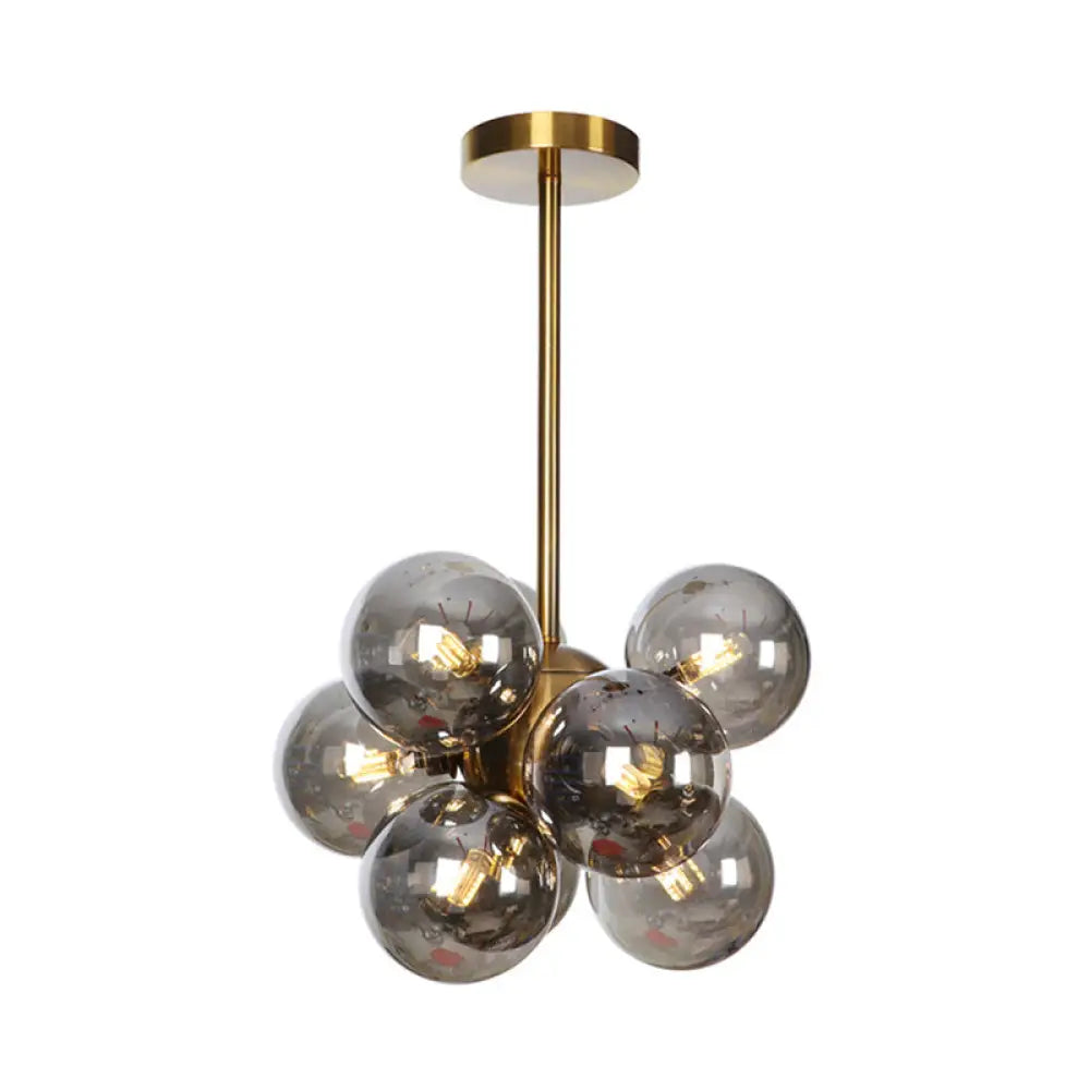 DecorBites™ DecorBites™ Minimalist Globe Semi Flush Ceiling Lamp - Gray/White/Red Glass - 9 Lights - Black/Brass/Chrome