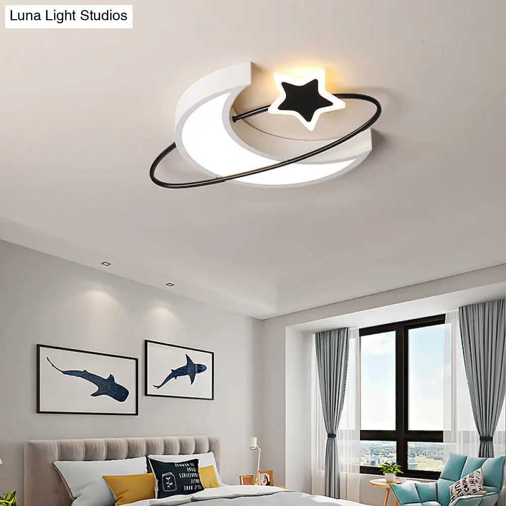 DecorBites™ DecorBites™ Minimalist Moon & Star Ceiling Light: Acrylic LED Flush Mount in Black-White for Bedrooms