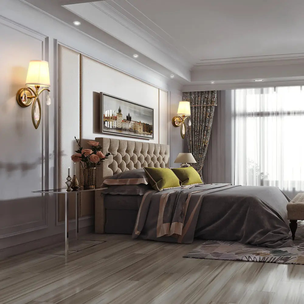 DecorBites™ DecorBites™ Modern 1-Light Conic Wall Lamp with Teardrop Crystal Deco in Brass - Stylish Fabric Sconce for Bedroom