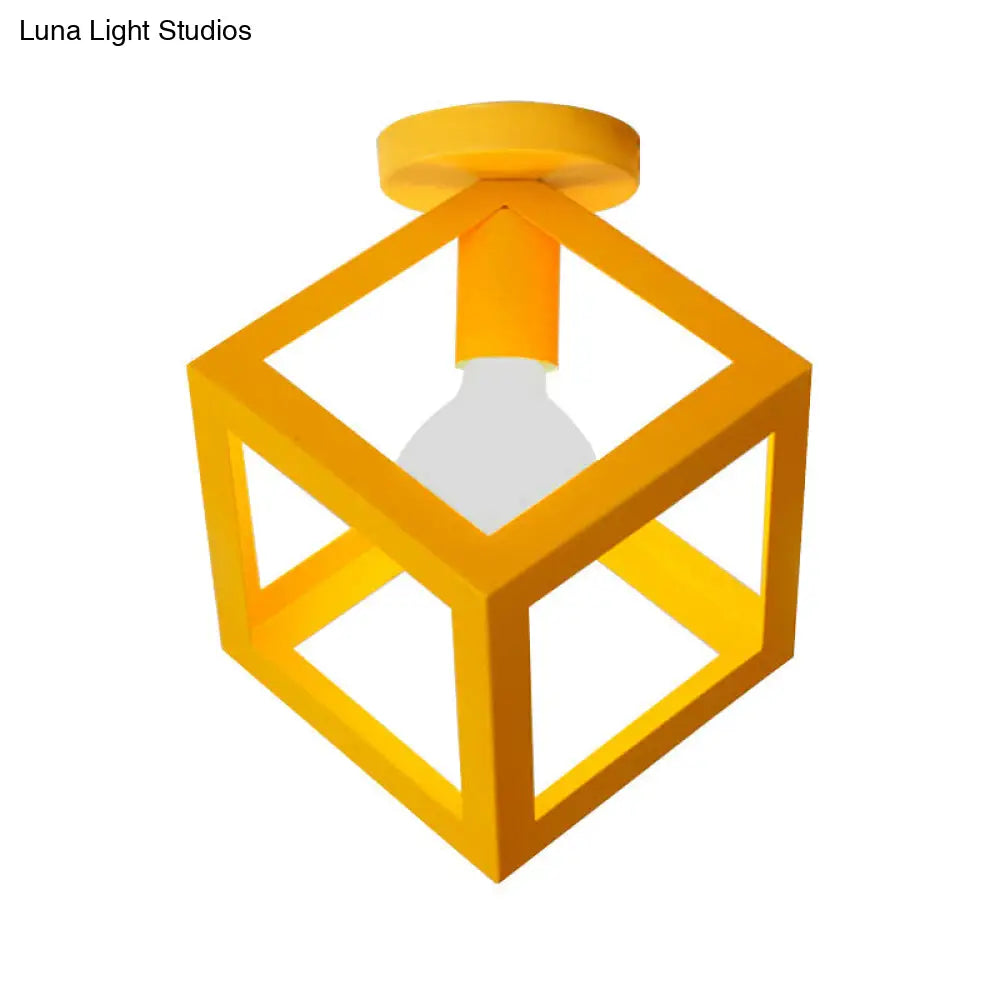 DecorBites™ DecorBites™ Modern 1-Light Square Ceiling Mounted Light with Wire Guard - Loft Style Semi-Flush Lighting for Bedroom