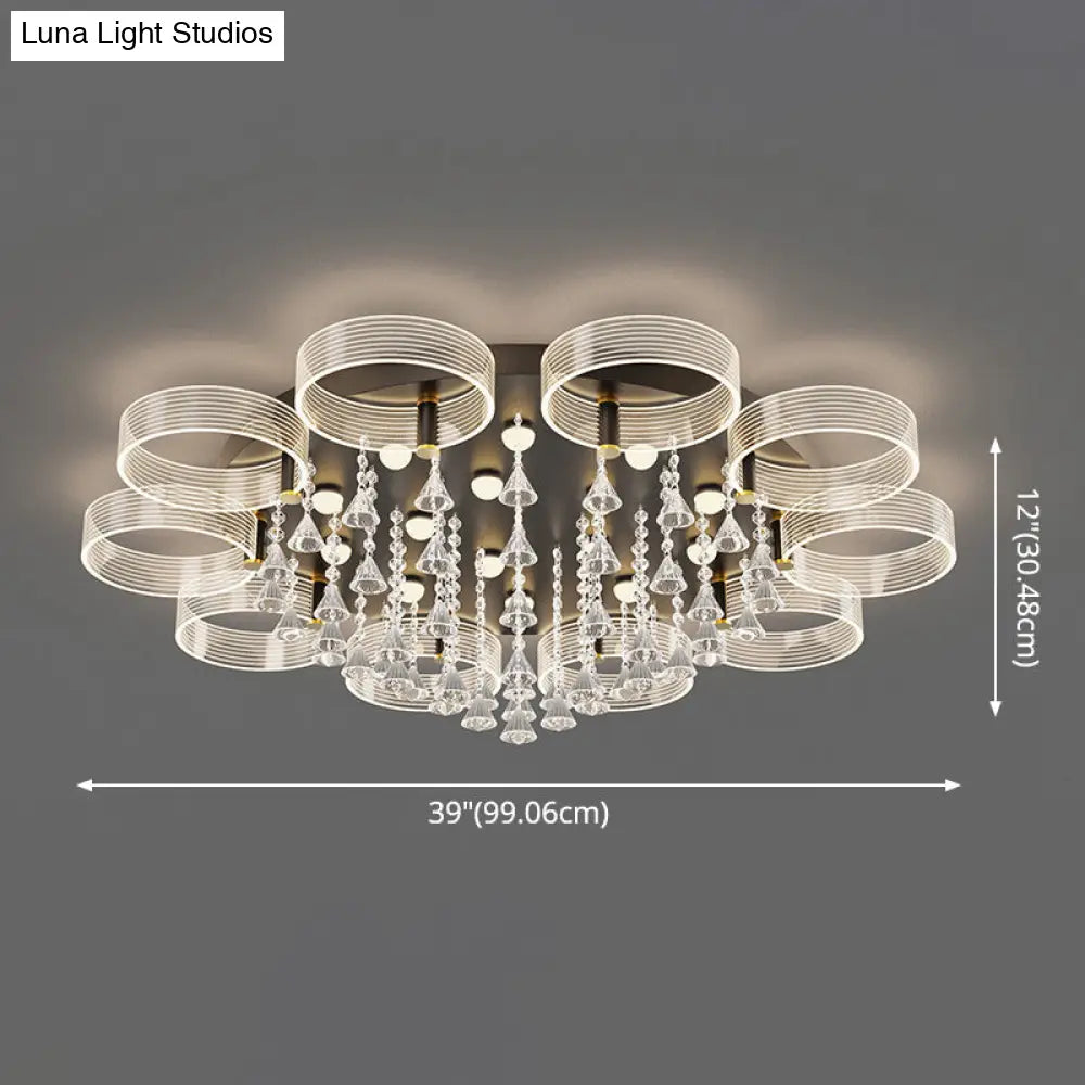 DecorBites™ DecorBites™ Modern Black-Gold LED Ceiling Light with Flower Design - Acrylic Round Semi Mount