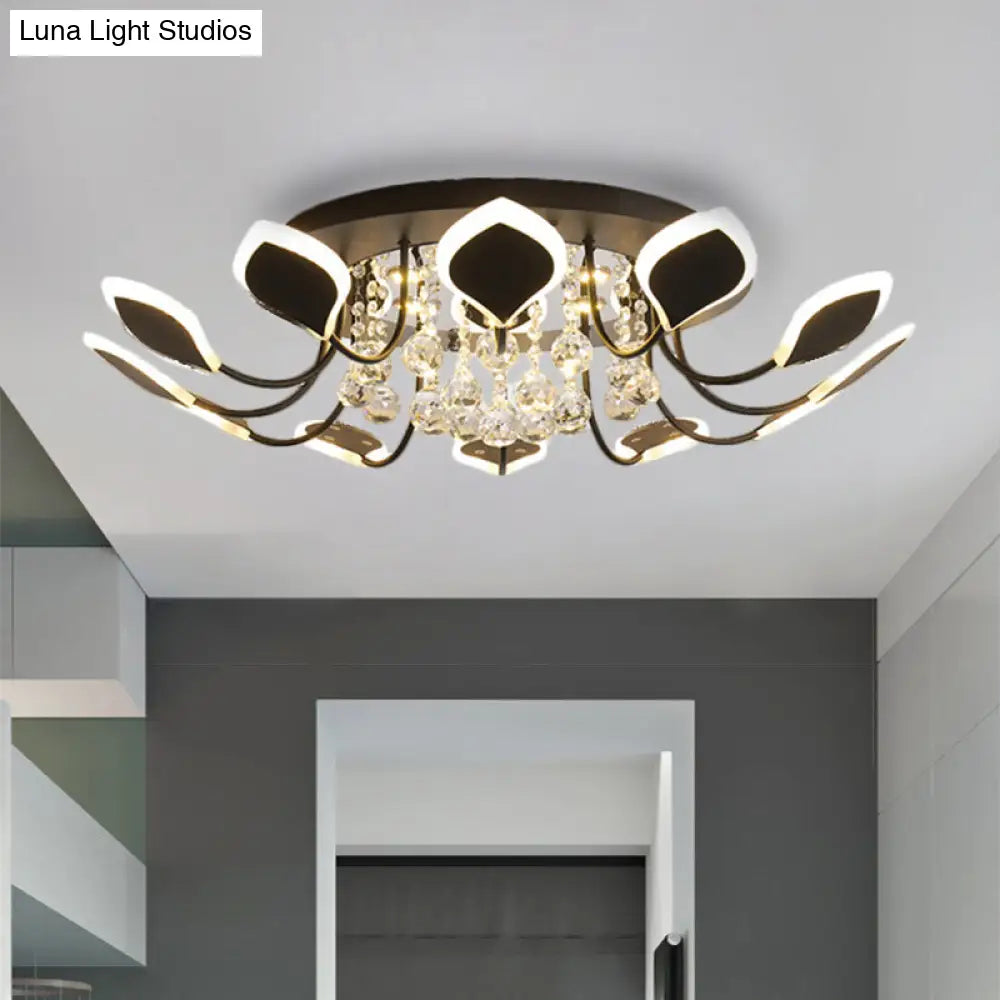 DecorBites™ DecorBites™ Modern Black/White Crystal Ceiling Light with Raindrop Shade – 10/12 Heads Parlor Flush Mount Lamp, Warm/White Lighting