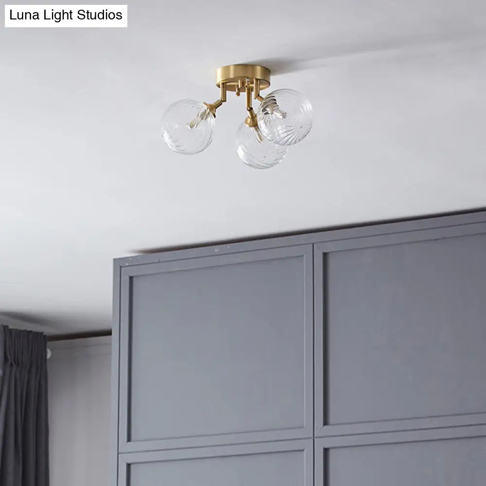 DecorBites™ DecorBites™ Modern Brass Semi-Flush Ceiling Light with Clear Twist Glass for Dining Room Lighting