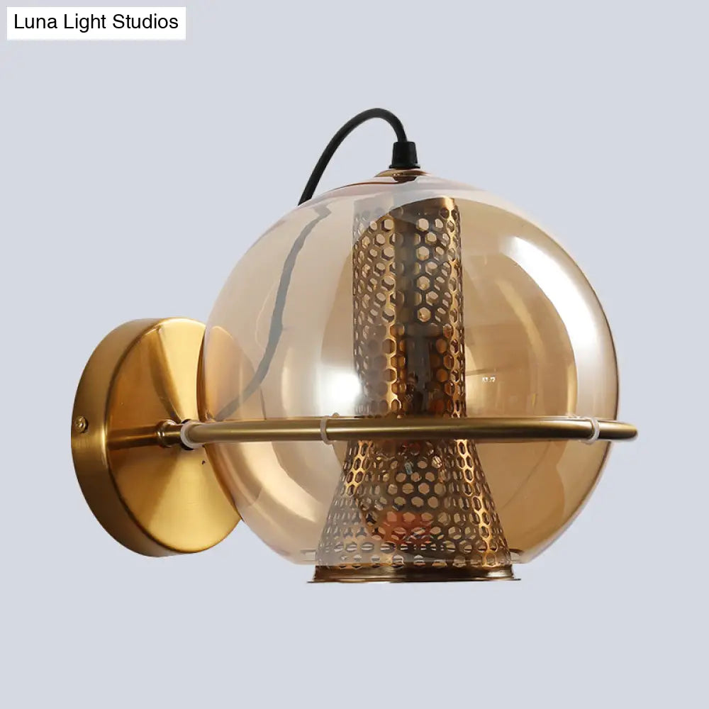 DecorBites™ DecorBites™ Modern Brass Sphere Wall Sconce with Cognac Glass - Bedside Light Fixture