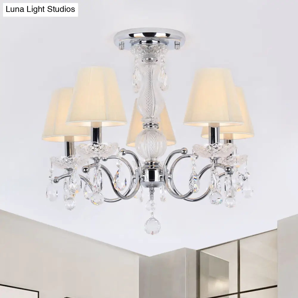 DecorBites™ DecorBites™ Modern Cone Semi Flush Crystal Ceiling Light Fixture with Swirled Arm - 5-Head Nickle Design