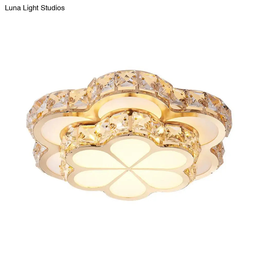 DecorBites™ DecorBites™ Modern Crystal Block Flower Flush Mount LED Ceiling Light Fixture, 10"/12"/14" W, White, Recessed/Surface Mounted