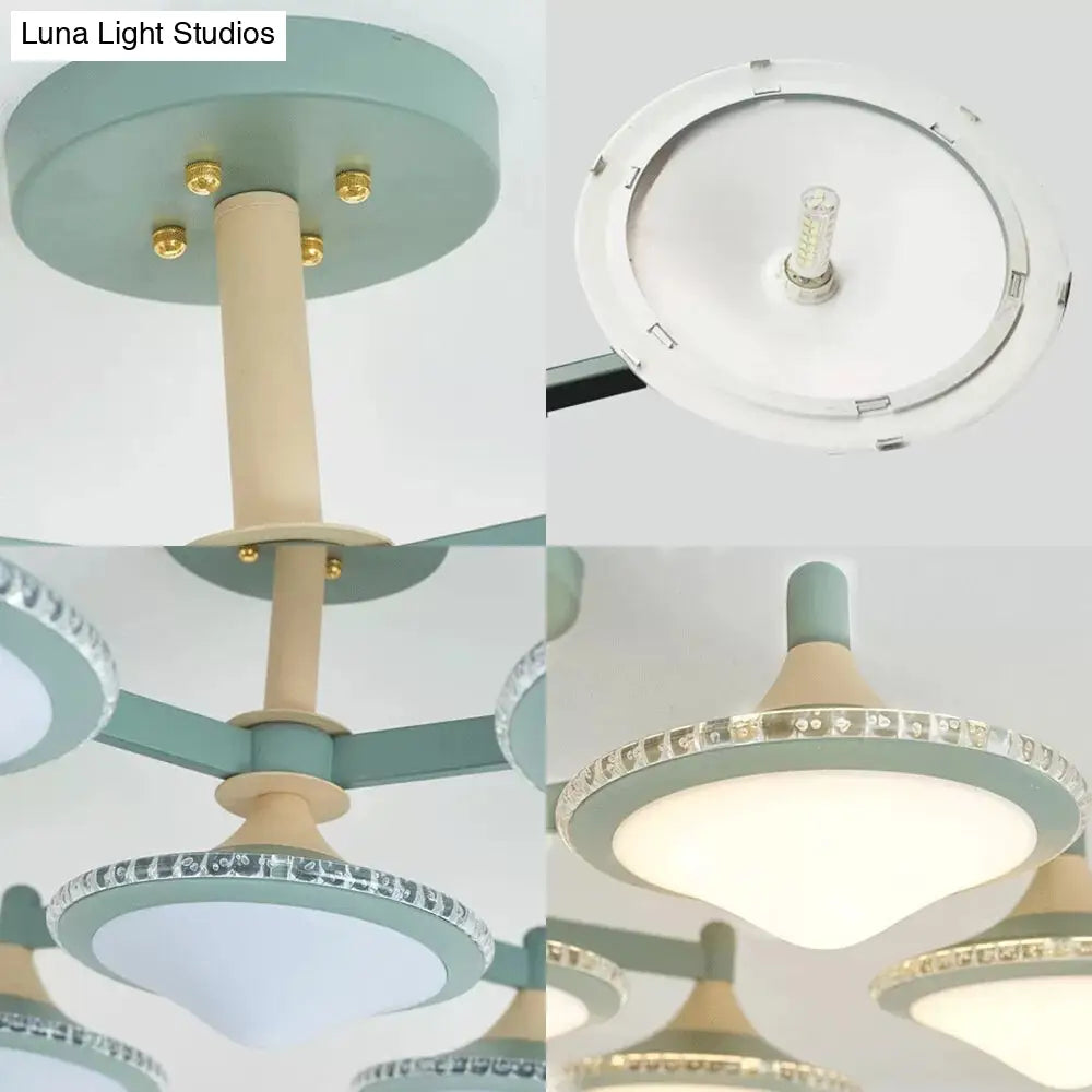 DecorBites™ DecorBites™ Modern Gyro Flush Mount Ceiling Light with 7 Wood Undertint Lights for Living Room