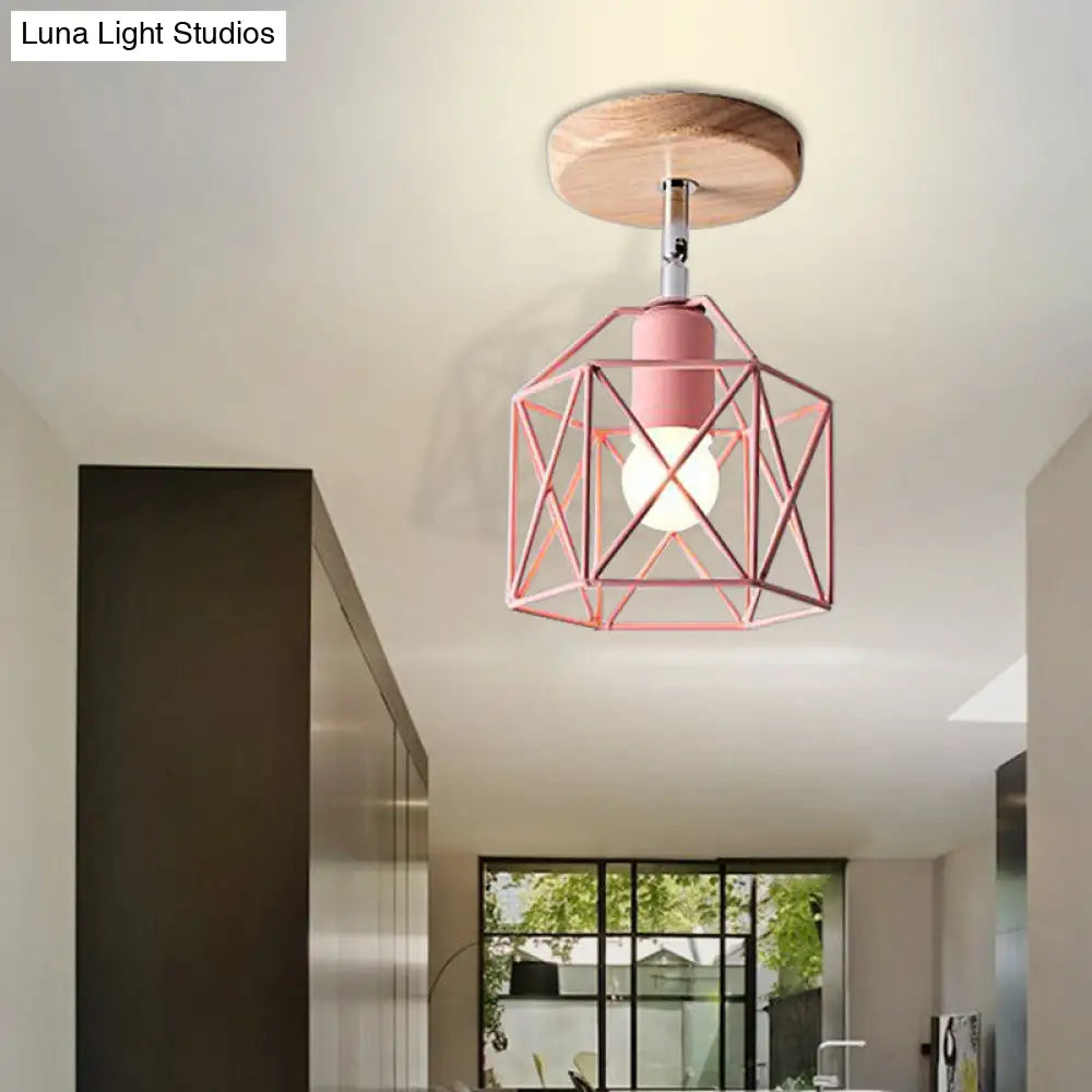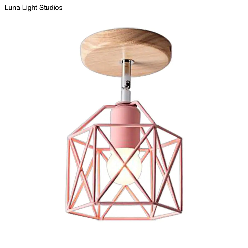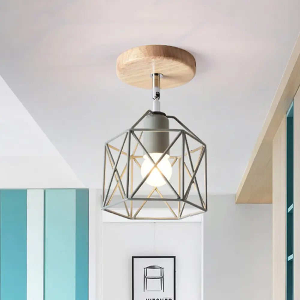 DecorBites™ DecorBites™ Modern Metal Hexagon Ceiling Light - Gray/White/Pink/Yellow/Blue/Green - Semi Flush Mount for Bedroom
