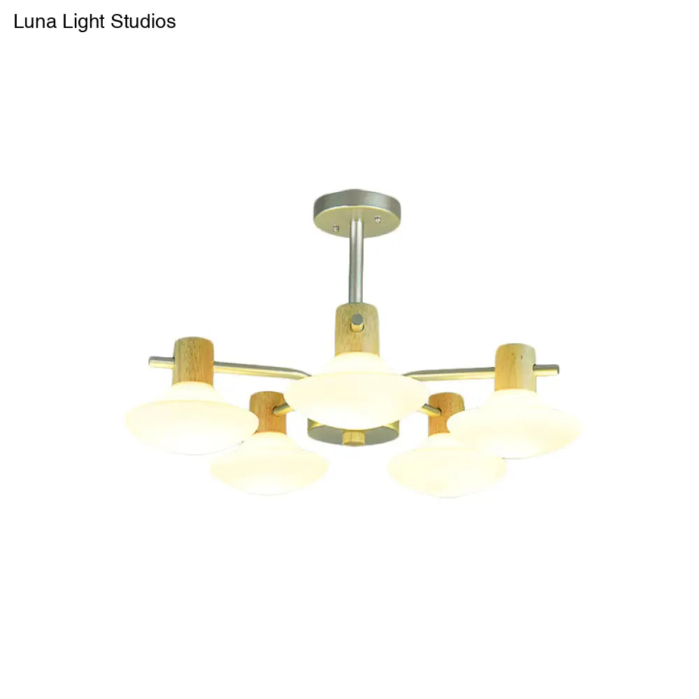 DecorBites™ DecorBites™ Modern Mushroom Semi Flush Ceiling Lamp with Opal Frosted Glass, Wood Finish - 5/6 Head for Bedroom