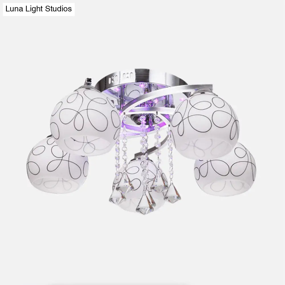 DecorBites™ DecorBites™ Modern Opal Glass Semi Flush Ceiling Light with Crystal Drop - 3/5 Lights, Chrome Finish