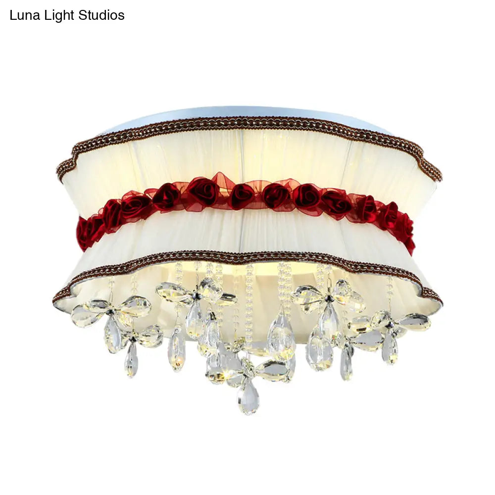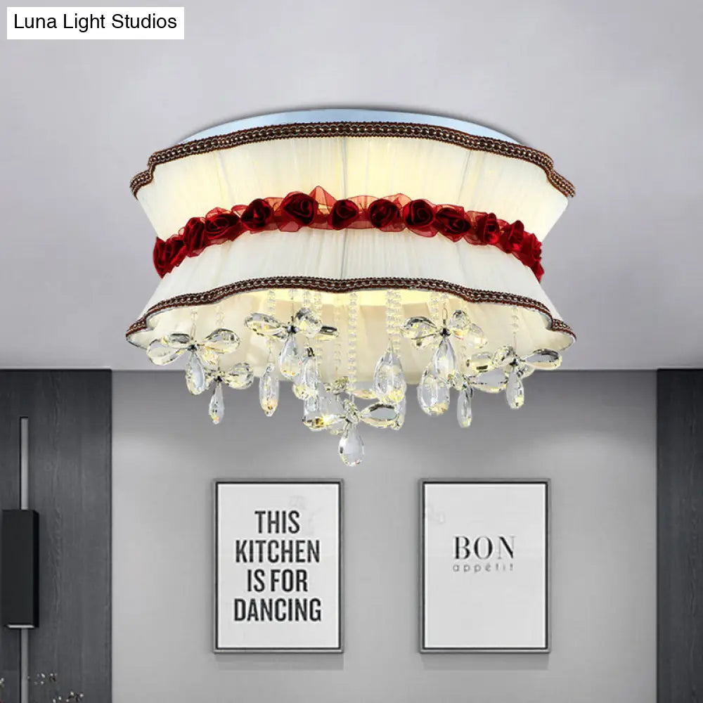 DecorBites™ DecorBites™ Modern Pleated Fabric Bouquet Flush Mount LED Ceiling Light in Beige with Red Rose Accent and Crystal Drops for Bedroom