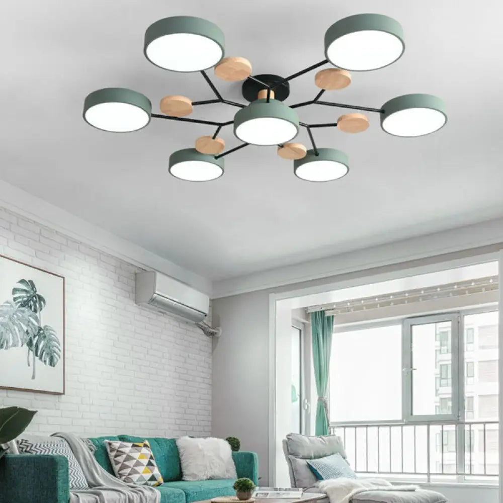 DecorBites™ DecorBites™ Modern Sputnik Metal Semi-Flush Mount Ceiling Light with 7-Head Design and Stylish Drum Acrylic Shade