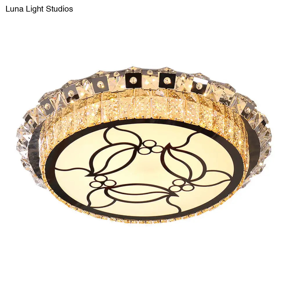 DecorBites™ DecorBites™ Modern Stainless Steel LED Flush Ceiling Lamp with Beveled Crystal, Leaf Pattern