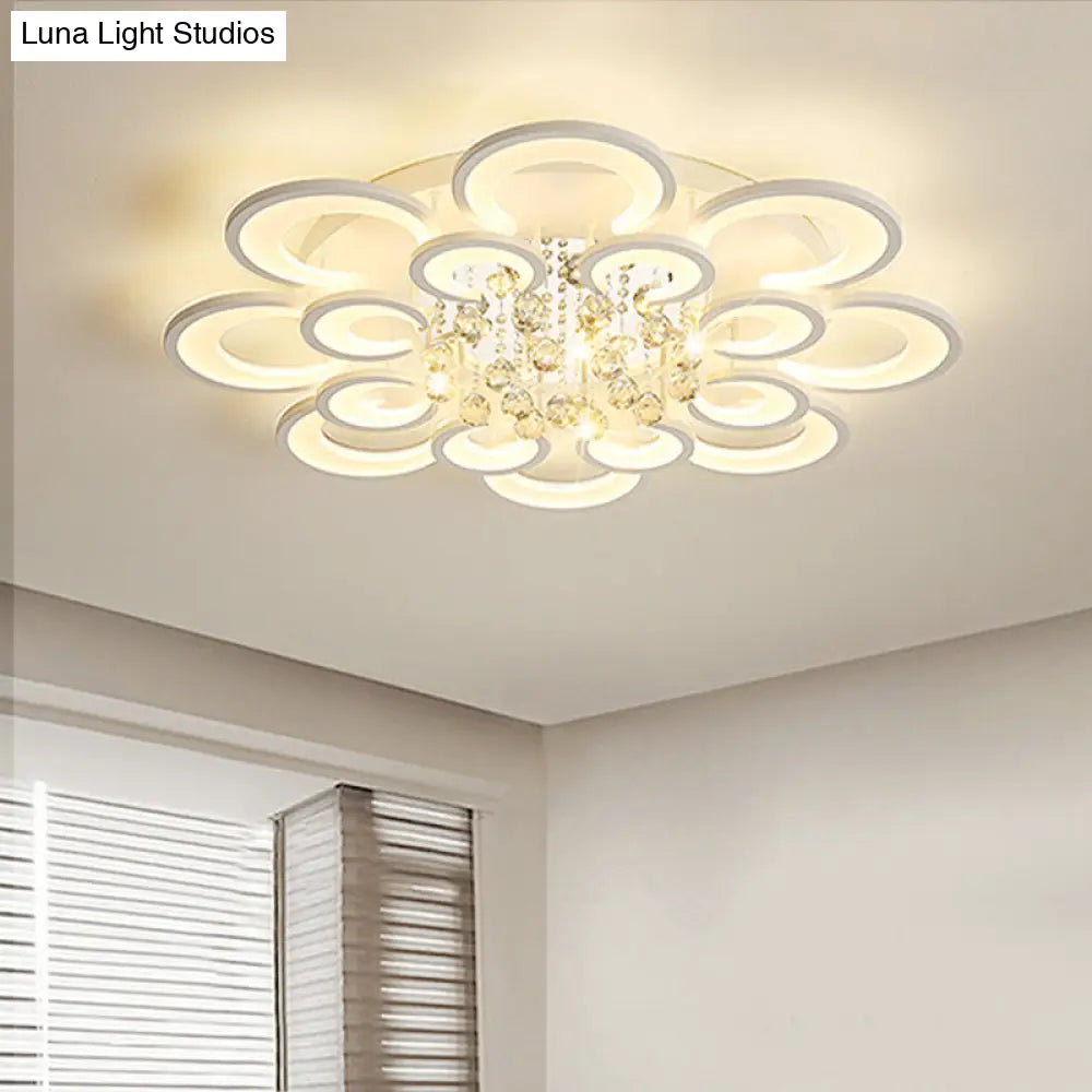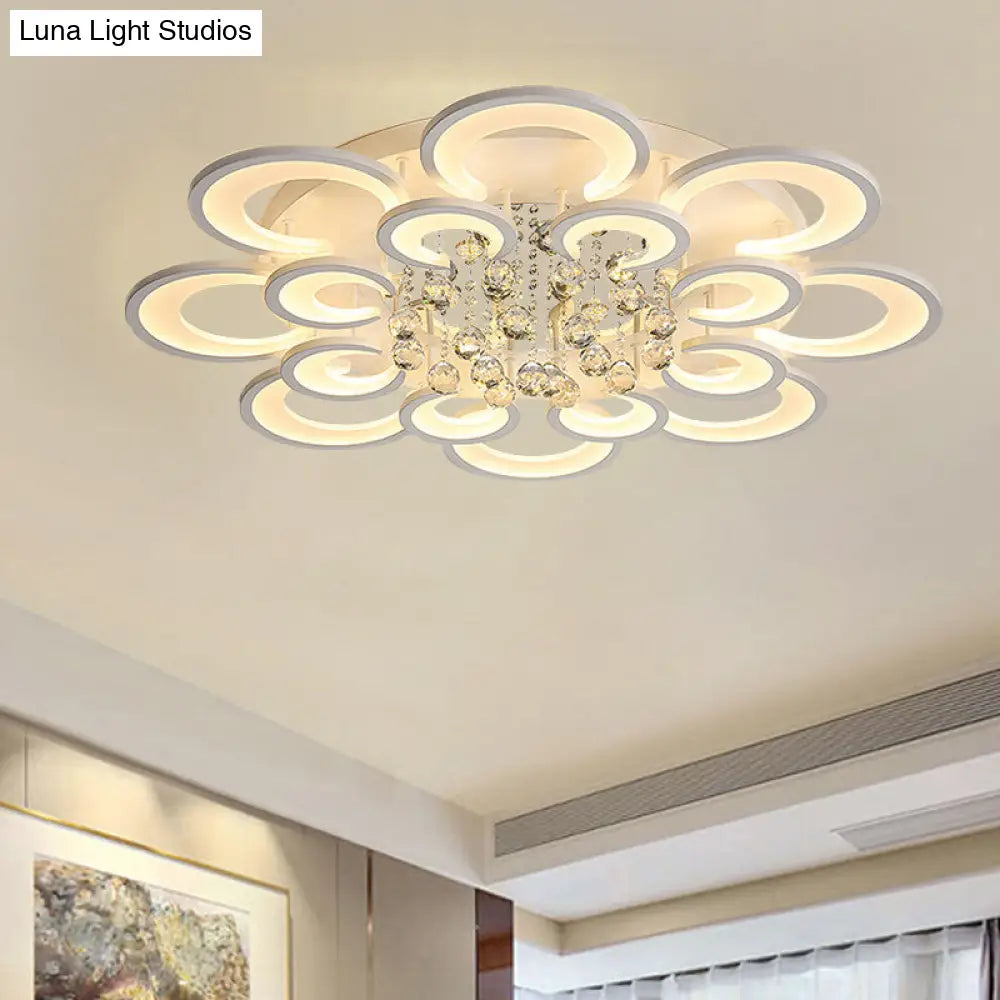 DecorBites™ DecorBites™ Modern White Floral LED Crystal Flushmount Lamp with Warm Lighting