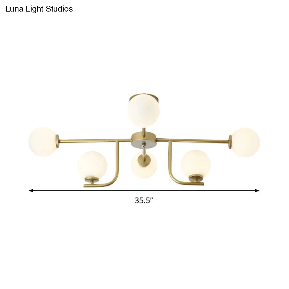 DecorBites™ DecorBites™ Modern White Glass Semi Flush Mount Ceiling Fixture with Gold Accents - 6 Bulbs