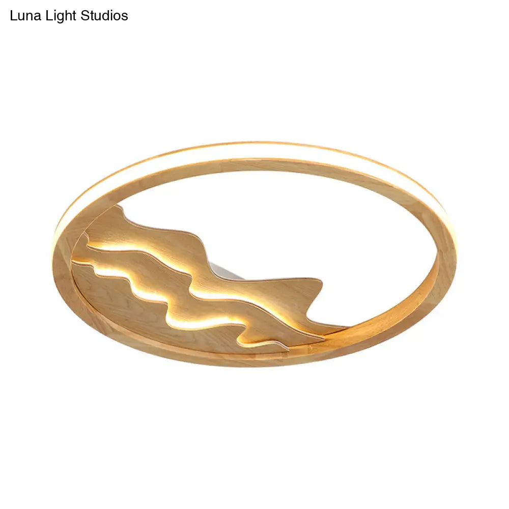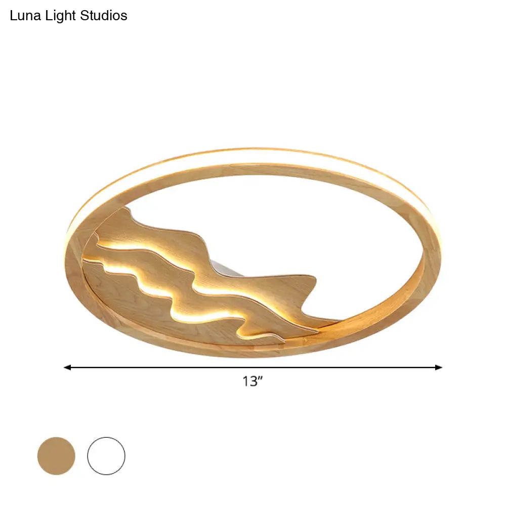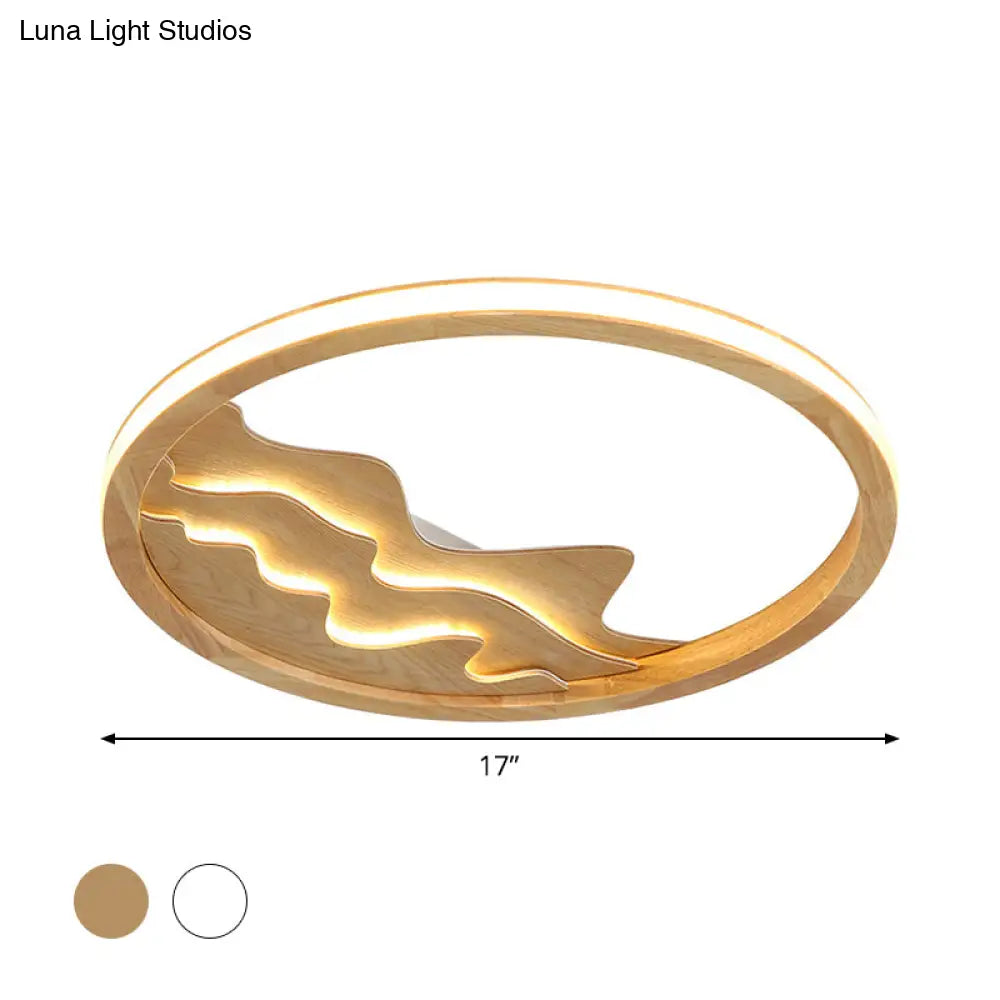 DecorBites™ DecorBites™ Modern Wood LED Ceiling Light with Landscape Design - 13"/17" Circle Flush Mount Fixture in Beige