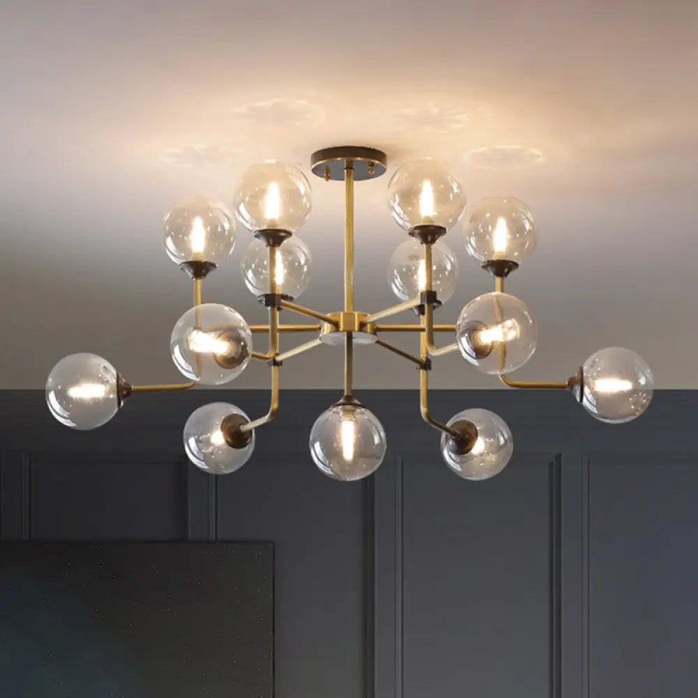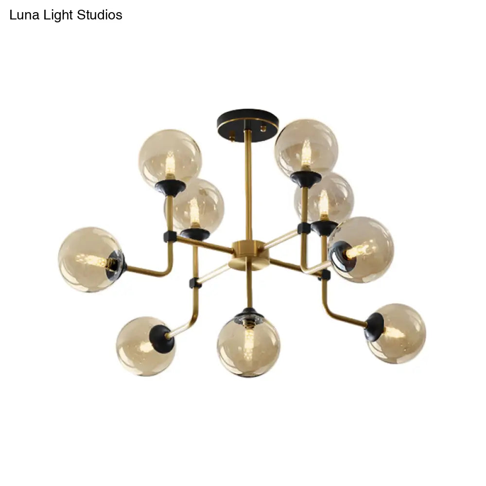 DecorBites™ DecorBites™ Modernist Amber Glass Globe Semi Flush Ceiling Mount Light Fixture (9/13 Bulbs) in Brass
