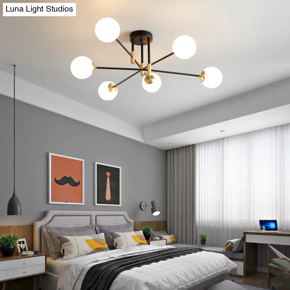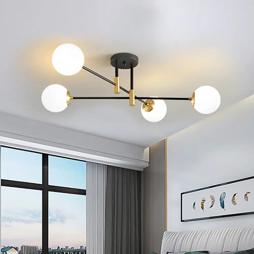 DecorBites™ DecorBites™ Modernist Black Glass Sphere Semi Flush Mount Light Fixture with Linear Arm - 4/6/8 Lights