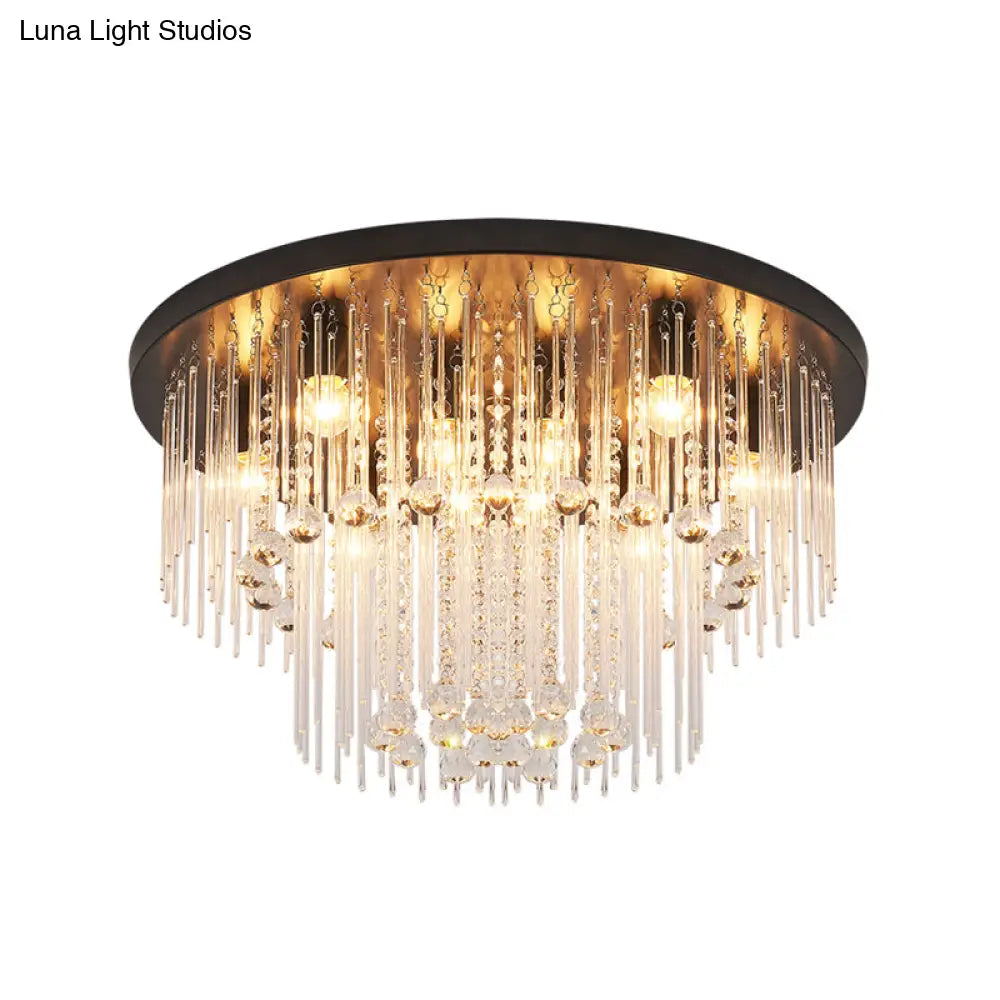 DecorBites™ DecorBites™ Modernist Black Tiered Flush Ceiling Light: 19.5"/23.5" Dia, 8-Light Crystal Lamp
