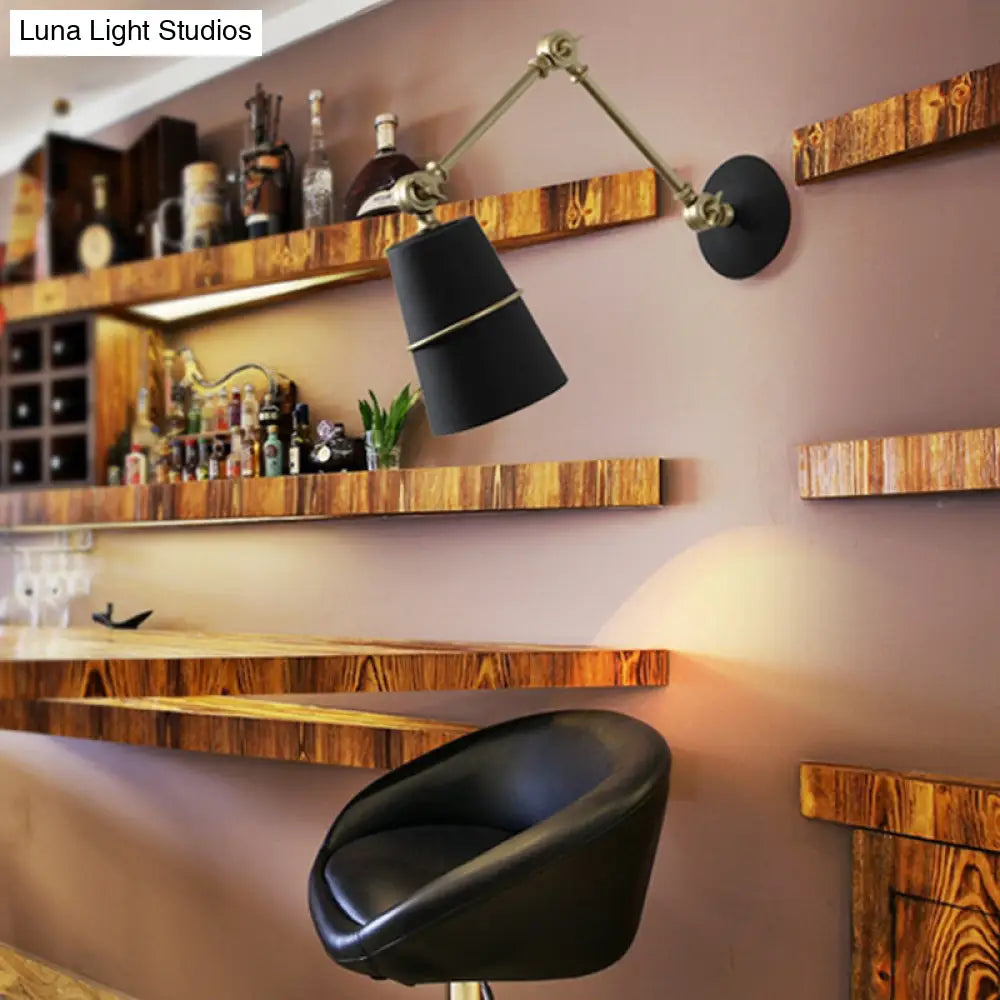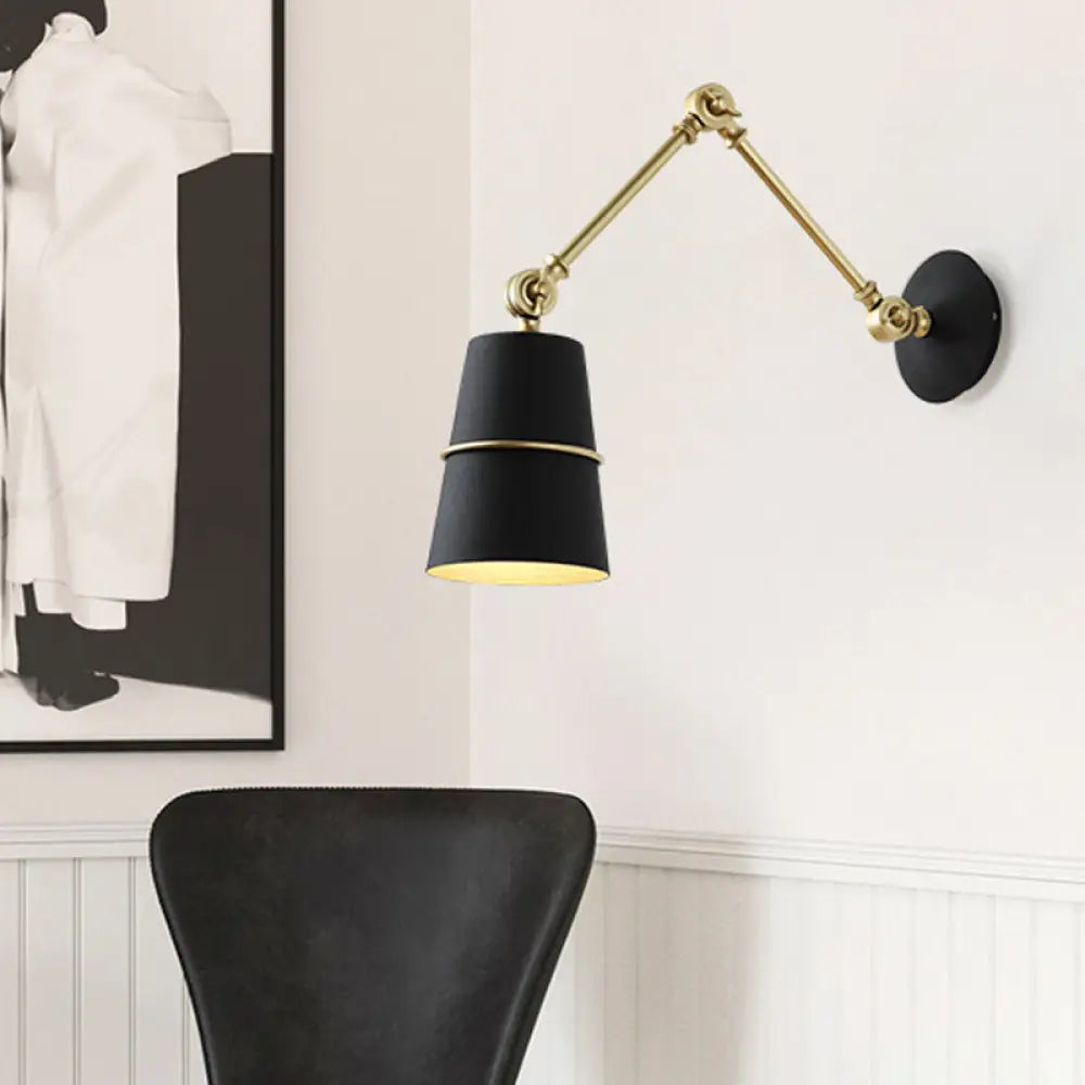 DecorBites™ DecorBites™ Modernist Metal Conical Sconce with Adjustable Arm - Wall Mounted 1-Head Light in White/Black