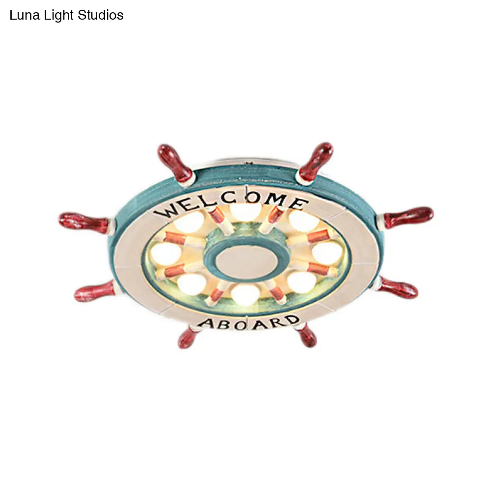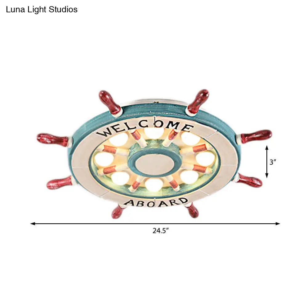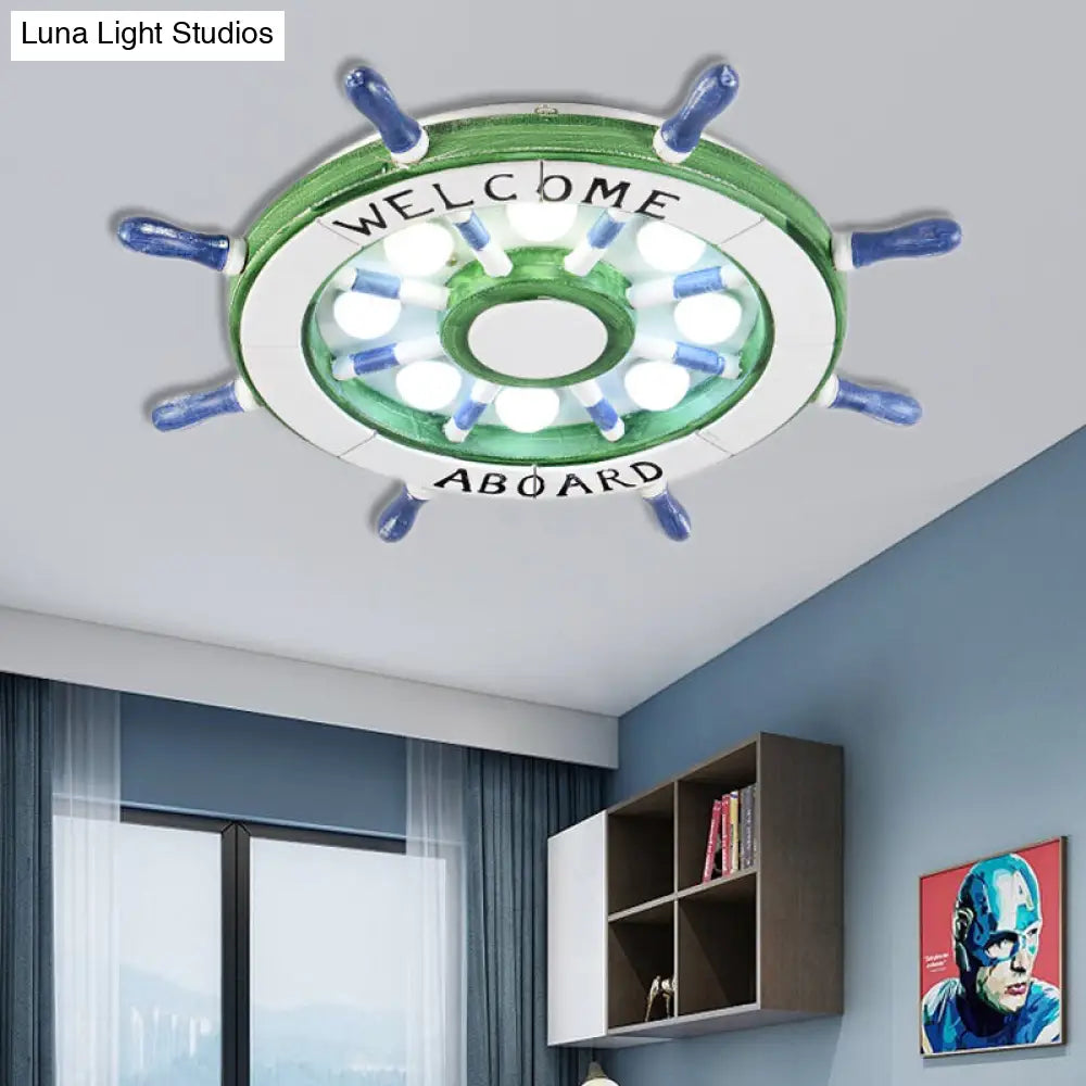 DecorBites™ DecorBites™ Nautical Wood Rudder Flushmount Ceiling Lamp - 8-Light Children's Room Lighting in Green/Red with Warm/White Glow