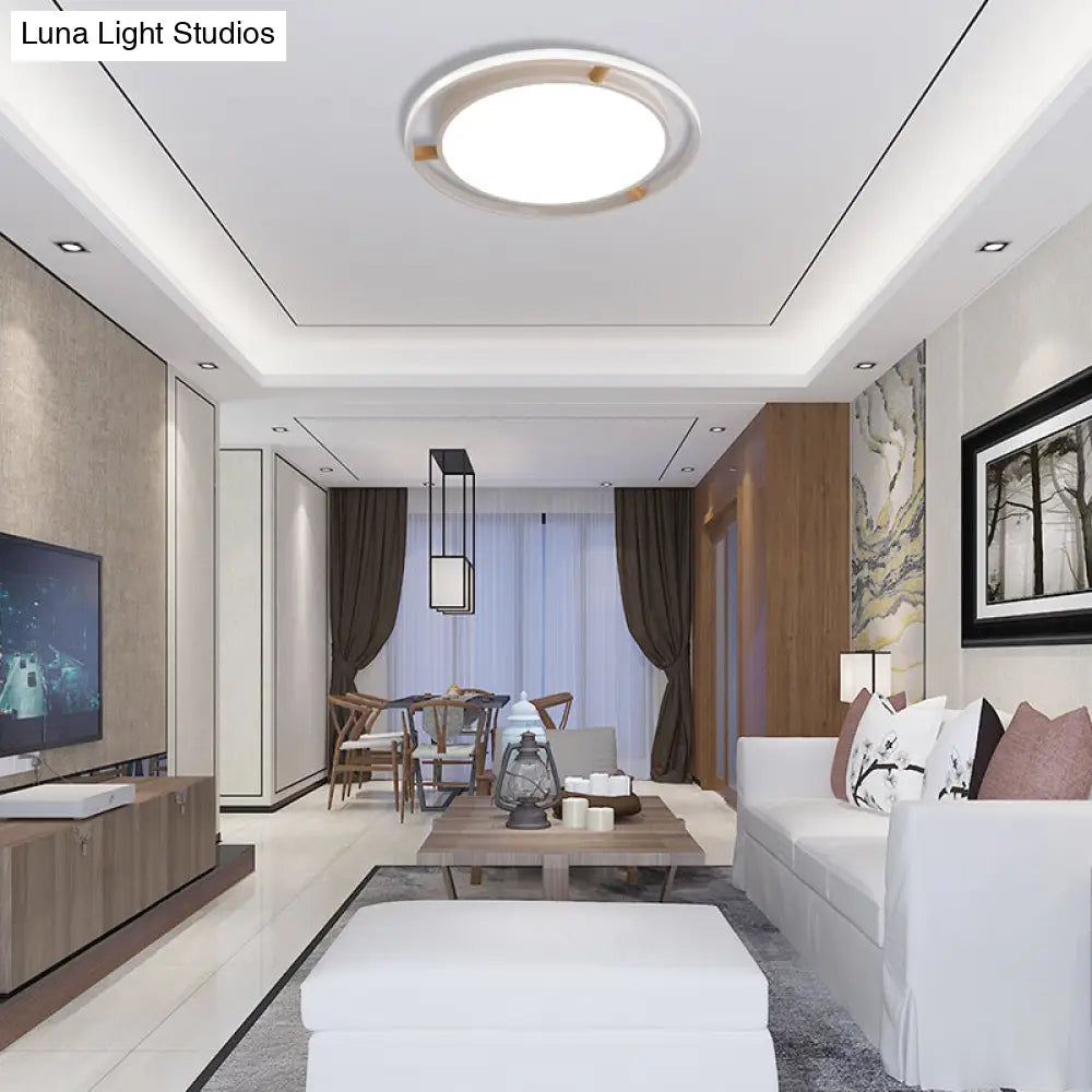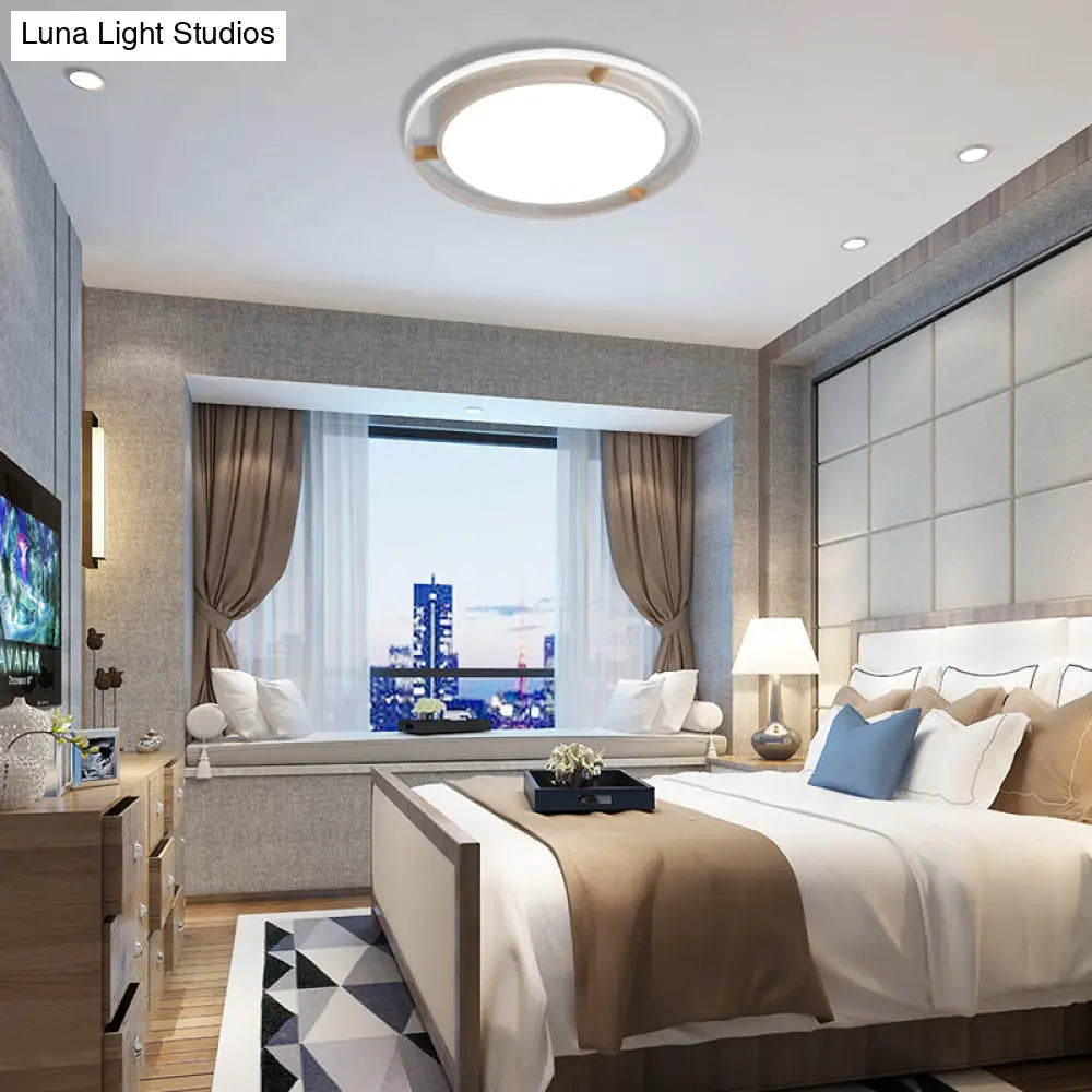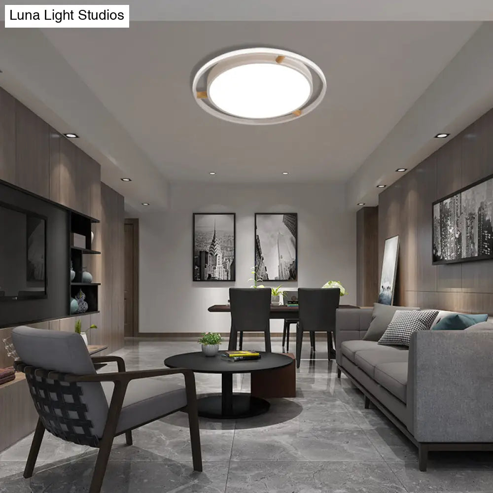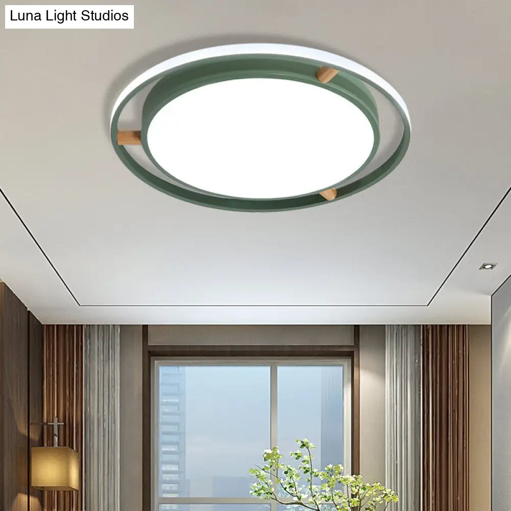DecorBites™ DecorBites™ Nordic Dual Circle LED Ceiling Flush Light with Wood Arm - White/Green/Grey, Thin Flushmount Lighting - 16"/19.5"/23.5" W