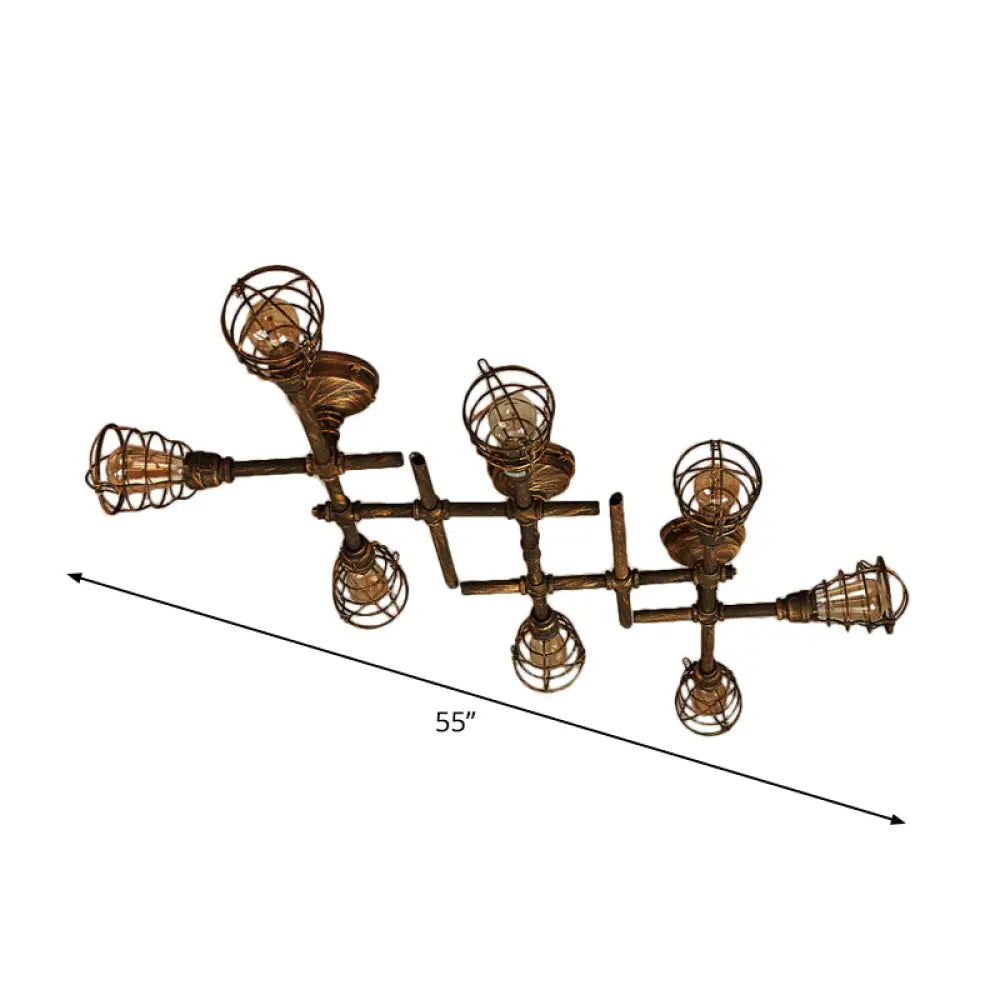 DecorBites™ DecorBites™ Piping Industrial Antiqued Bronze Metal Semi Flush Mount Ceiling Light with Cage