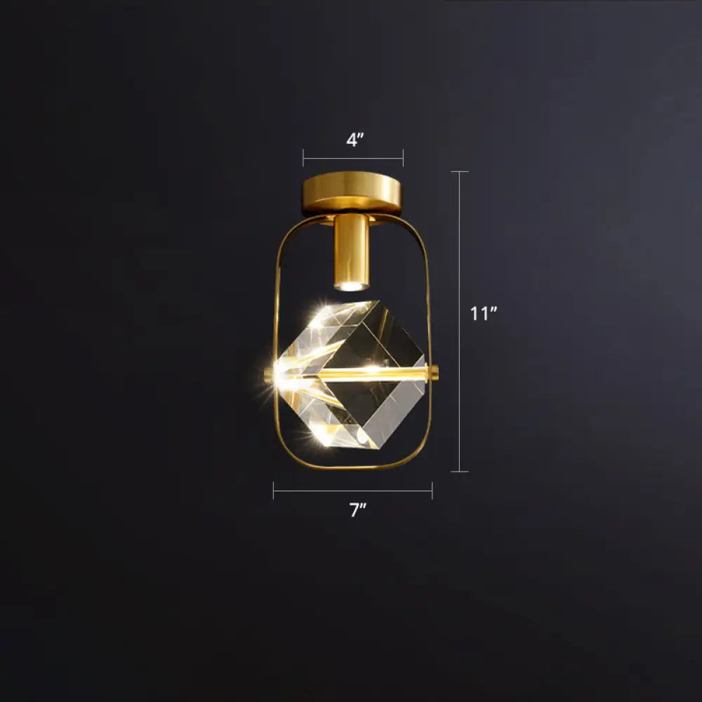 DecorBites™ DecorBites™ Postmodern Crystal Gold Cube LED Ceiling Lamp - Semi Flush Mount for Foyer
