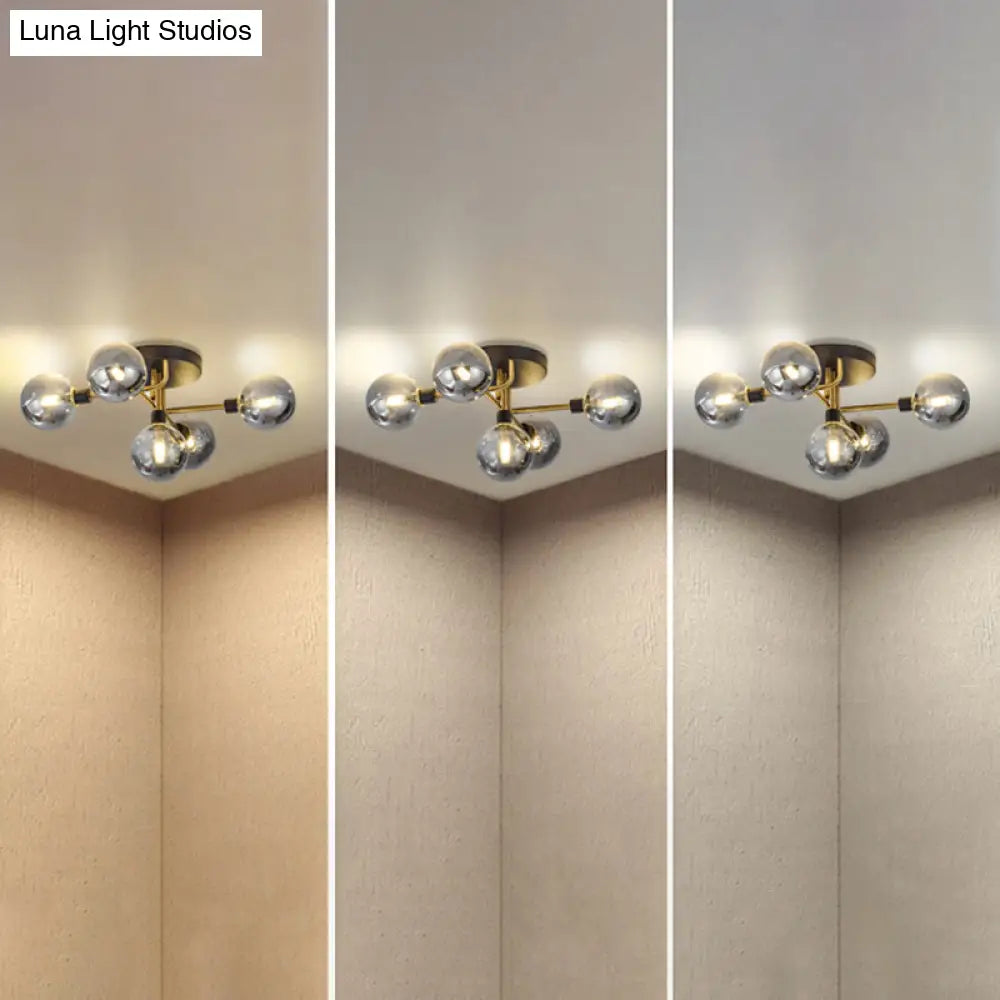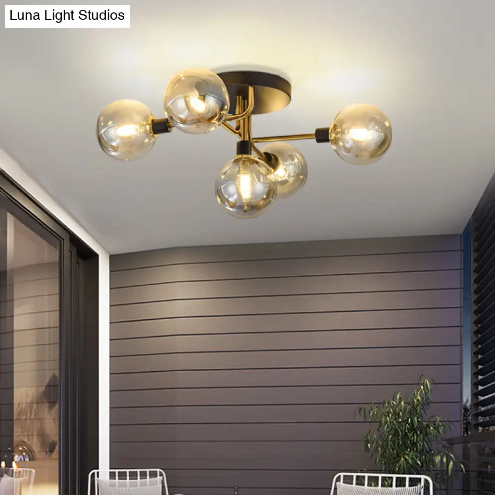 DecorBites™ DecorBites™ Postmodern Semi Flush Ceiling Lamp - 5-Light Dining Room Light Fixture with Ball Glass Shade