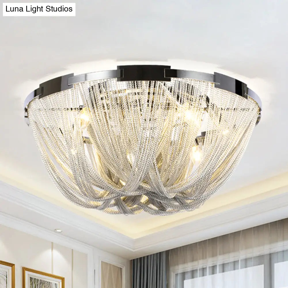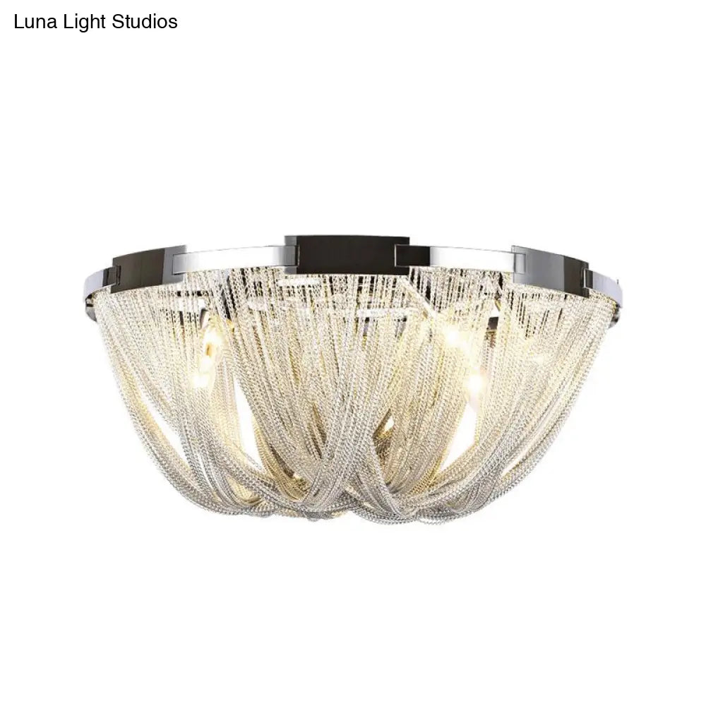 DecorBites™ DecorBites™ Postmodern Tassel Flush Mount Ceiling Fixture with Metal Frame, 4/5 Lights, Chrome Finish - Ideal for Living Room - 16"/19.5" Wide