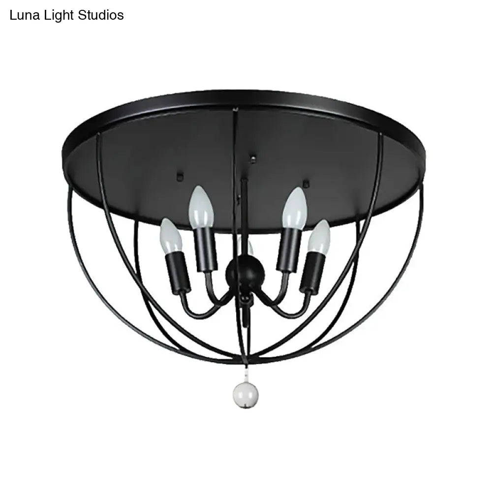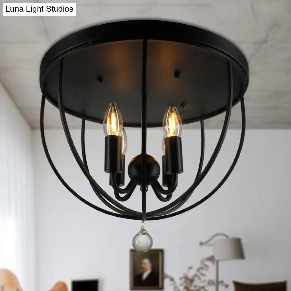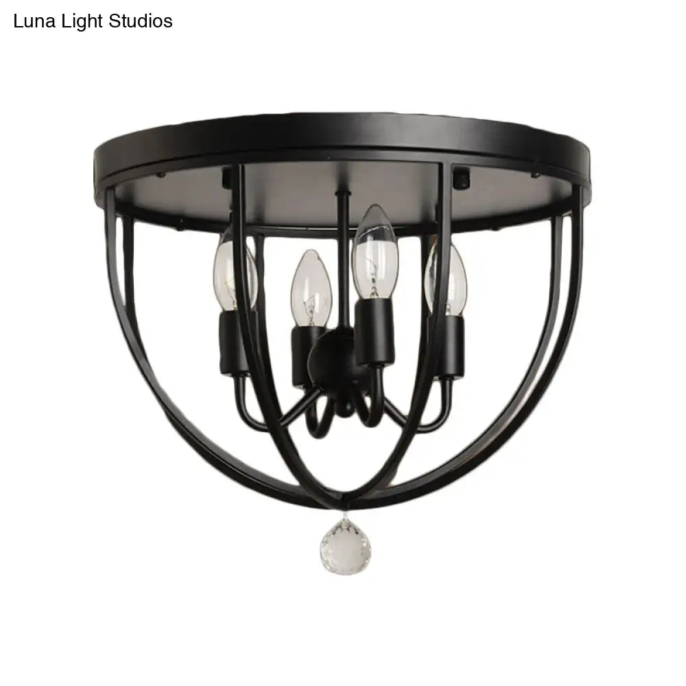 DecorBites™ DecorBites™ Retro Black Metallic Flush Mount Ceiling Light with Wire Cage and Clear Crystal Ball - 1/4/5 Heads