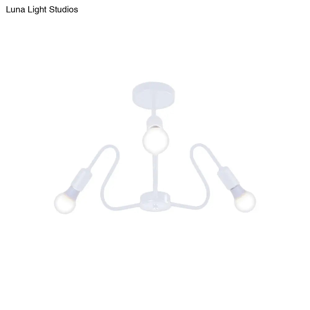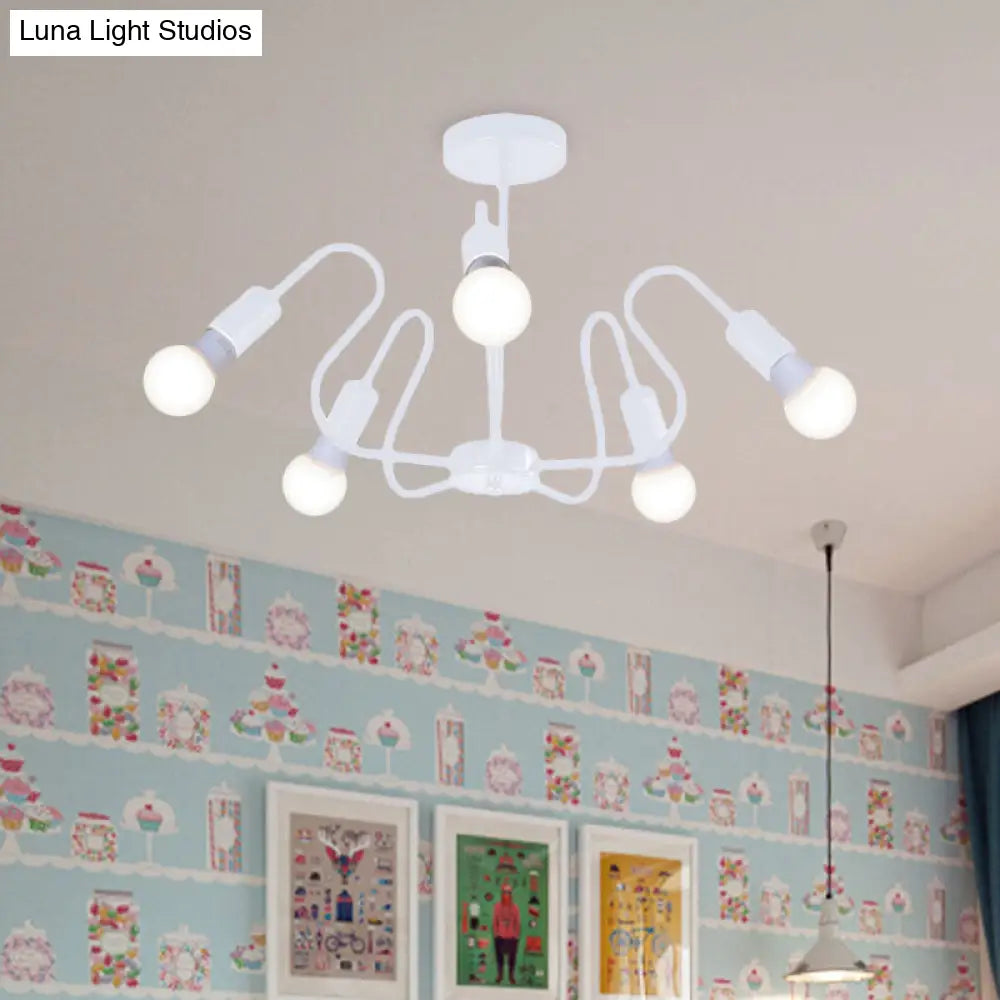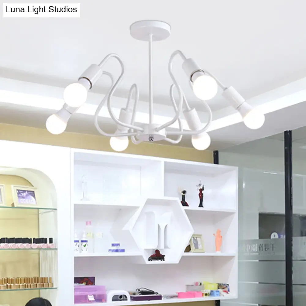 DecorBites™ DecorBites™ Retro Industrial Metal Semi Flush Mount Ceiling Light with Exposed Bulb - 3/5/6 Heads - Dining Room Lighting - Black/White