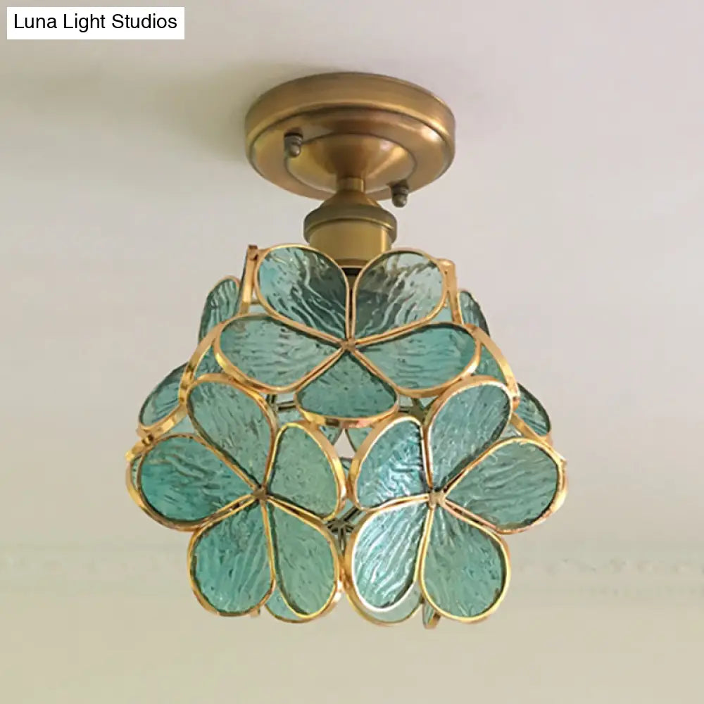 DecorBites™ DecorBites™ Retro Style Floral Stained Glass Ceiling Light with Pink/Blue/Green/Clear Shades for Hallway Flushmount