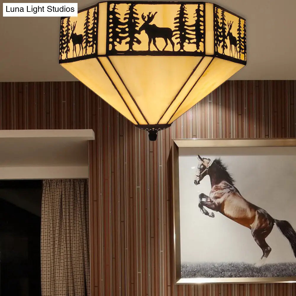 DecorBites™ DecorBites™ Retro Style Geometric Stained Glass Flush Mount Ceiling Light in White - Elegant 1/2 Light Flushmount