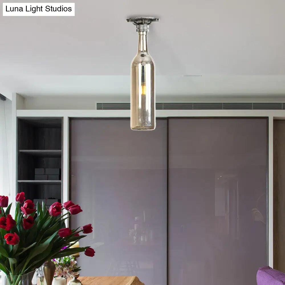 DecorBites™ DecorBites™ Rustic Semi Flush Bottle Glass Ceiling Light Fixture with Brown/Blue Shades for Corridor