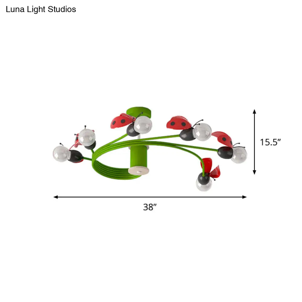 DecorBites™ DecorBites™ Semi Flush Kids 6-Light Metal Ceiling Lighting Fixture - Green Twisted Vine Design with Butterfly Detail