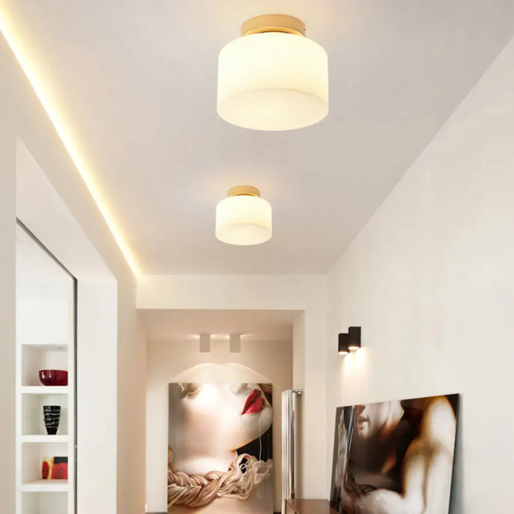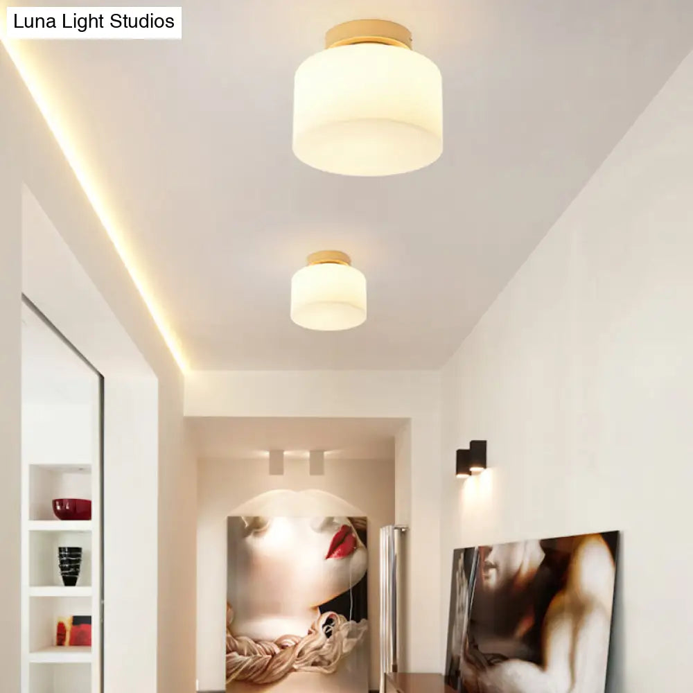 DecorBites™ DecorBites™ Simple Opal Glass Square/Cylinder Flush Mount Light Ceiling Fixture in White