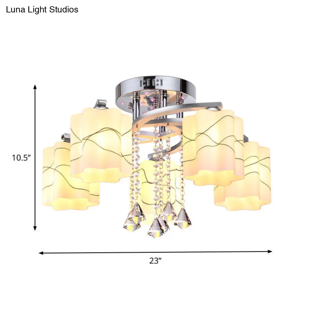 DecorBites™ DecorBites™ Sleek Chrome Ceiling Flush Mount with Frosted Glass Scalloped Semi Flush Design & Crystal Drop - 3/5 Bulbs